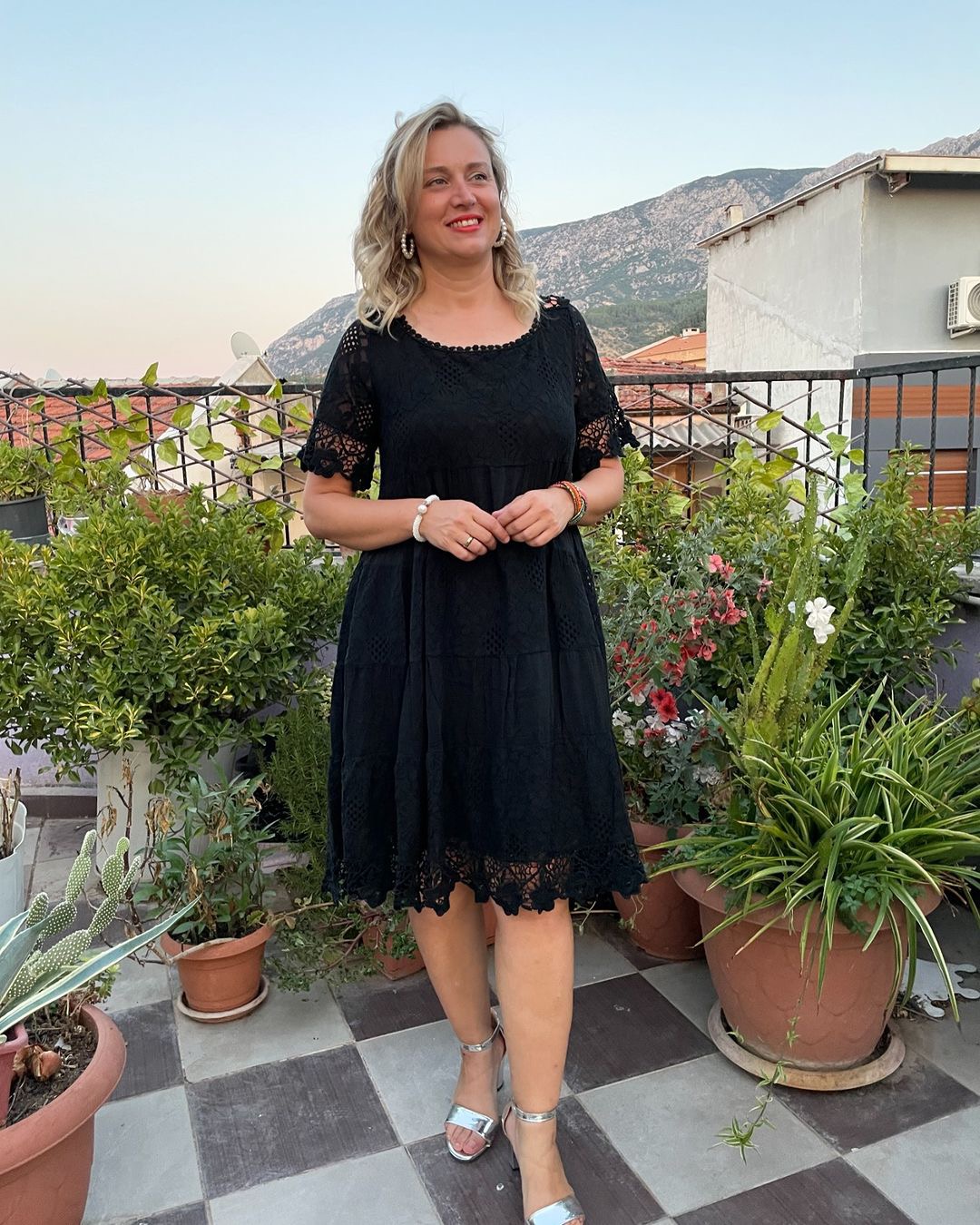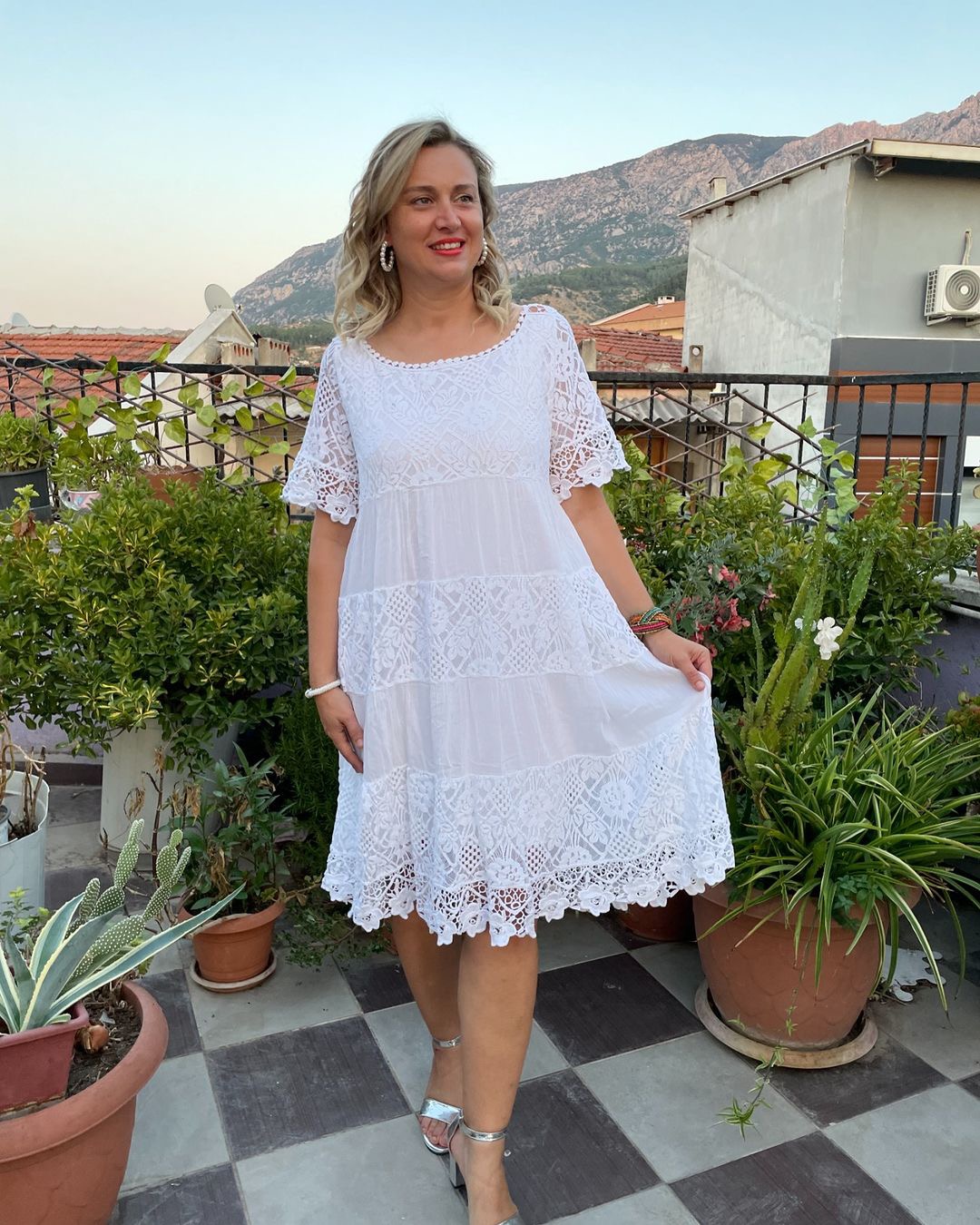 🔥【Kup 1, otrzymaj 1 gratis】✨✨【S-5XL】Nowa sukienka z krótkim rękawem i okrągłym dekoltem z koronki