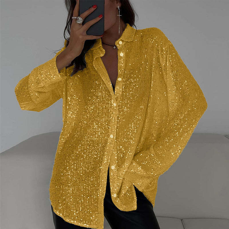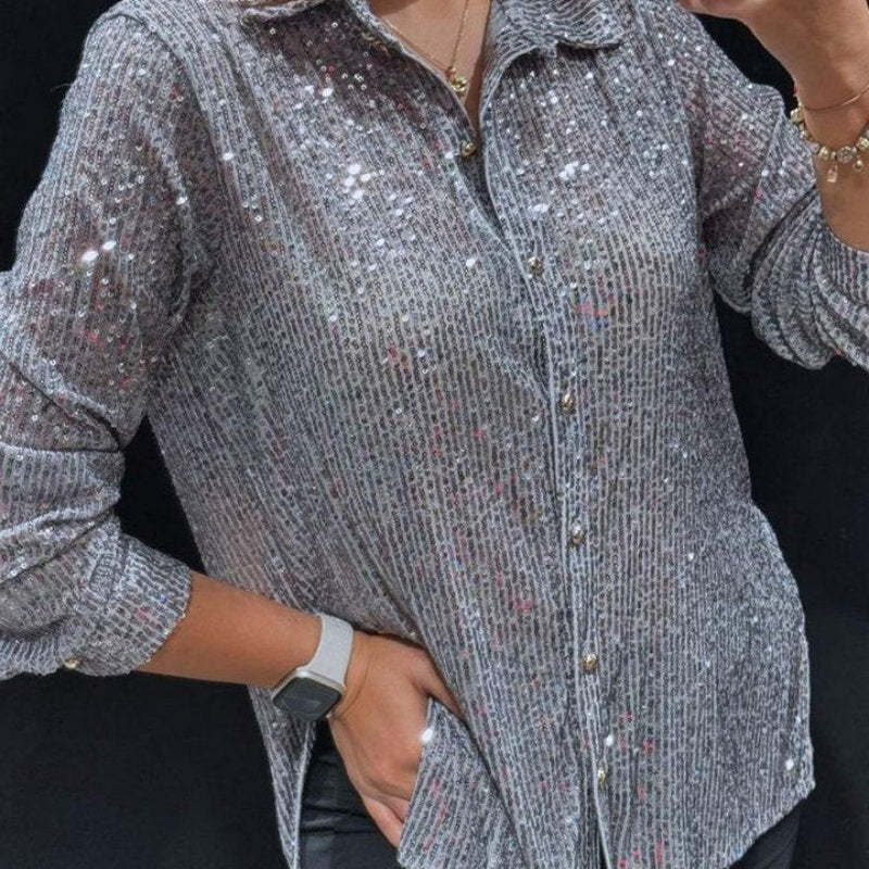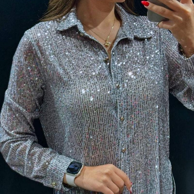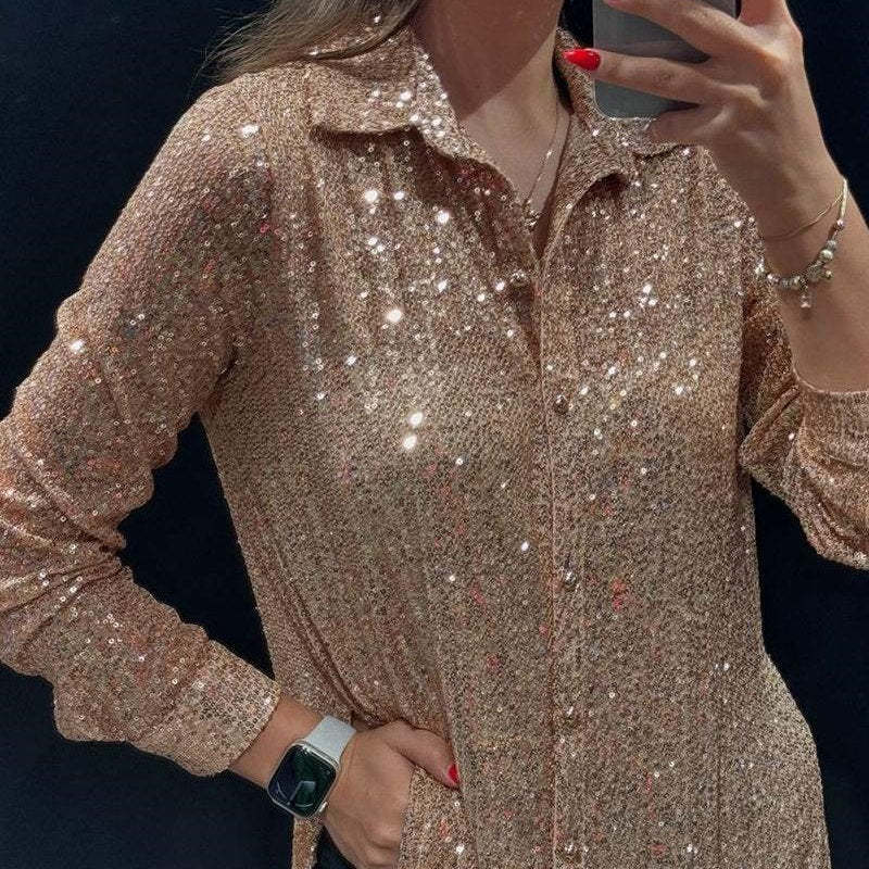 Ostatni dzień 49% ZNIŻKI🔥Damska jednorzędowa koszula z klapami i cekinami