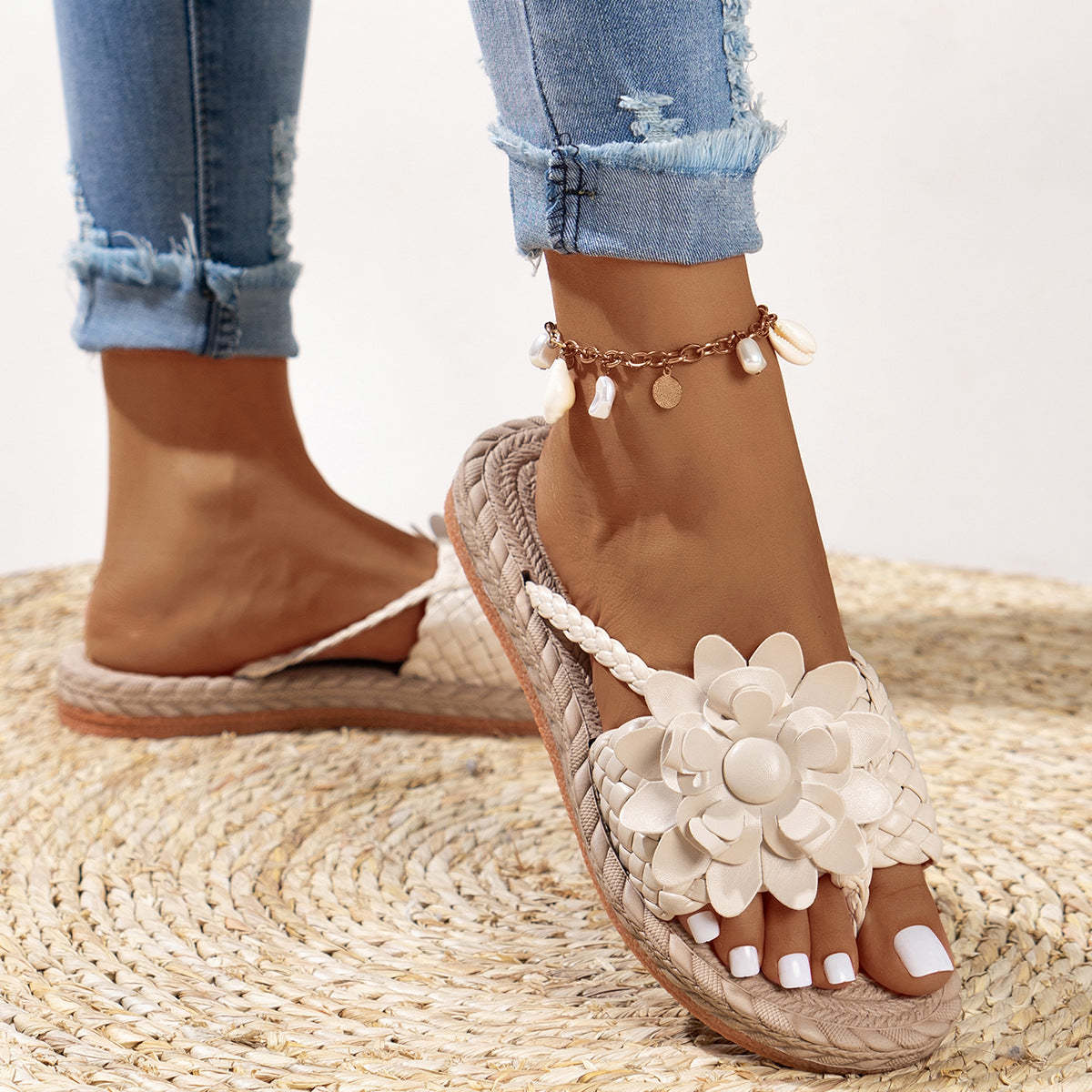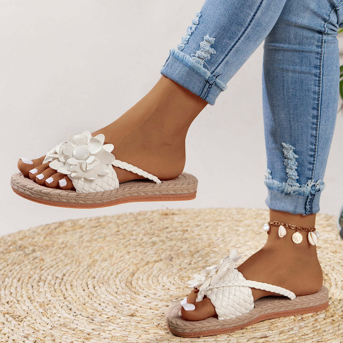 🎁Damskie modne płaskie kapcie w kwiaty🚶♀️
