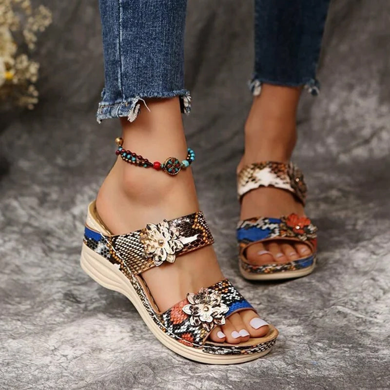 Damskie sandały na co dzień z wycięciem w kwiaty