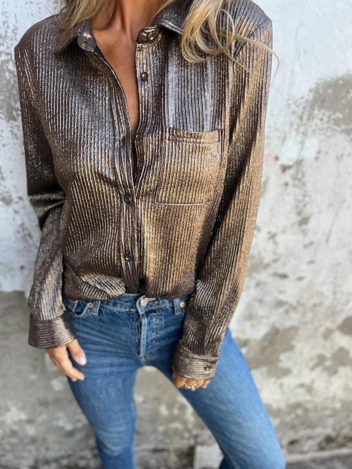 Jednorzędowa koszula z klapami, wykonana metodą tłoczenia na gorąco
