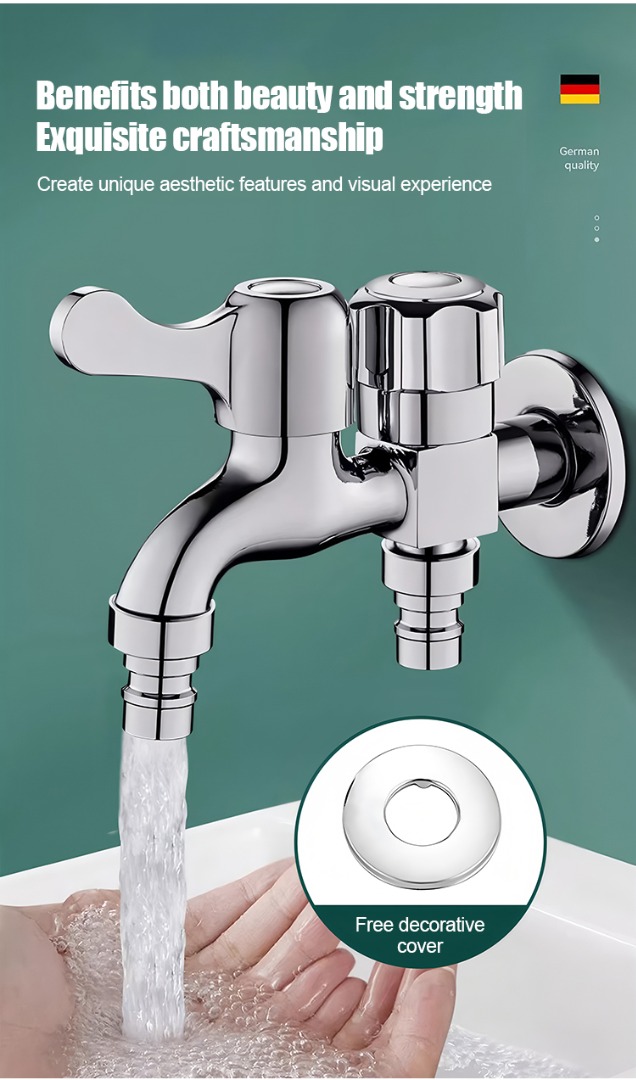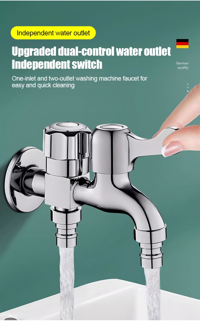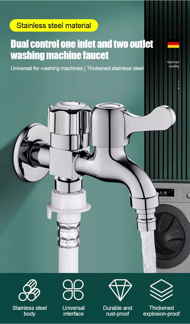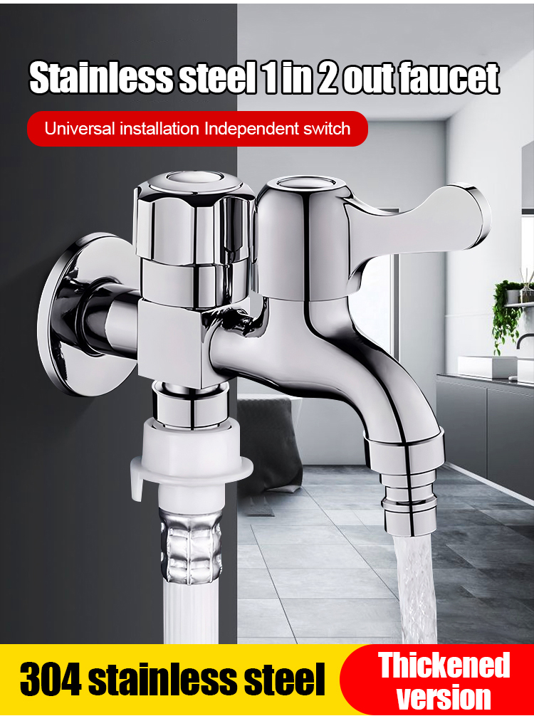 💧[Kup 1, a dostaniesz 1] 💧304 stal nierdzewna kran domowy z pojedynczym wlotem i dwoma wylotami, odpowiedni na balkon, do pralki, na zewnątrz, na dziedziniec