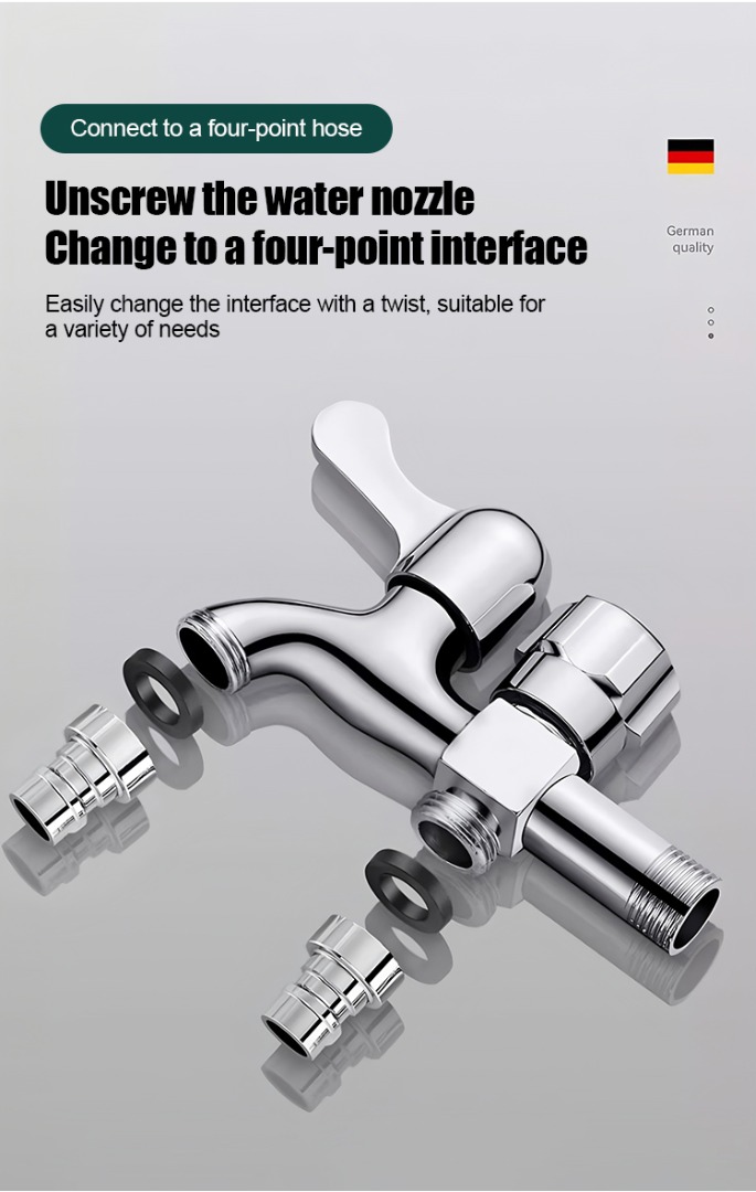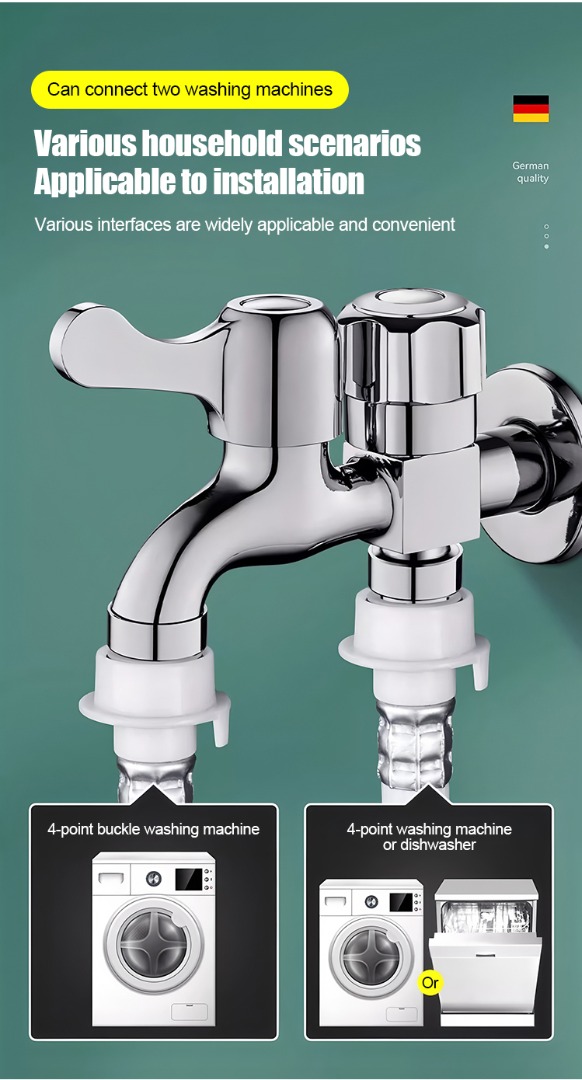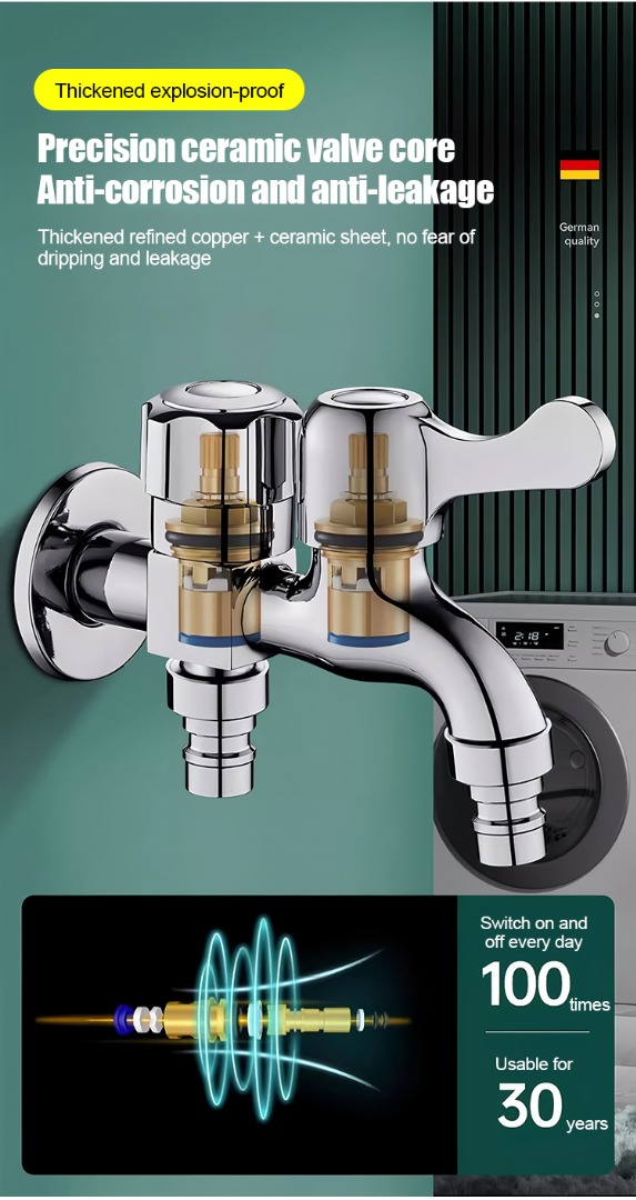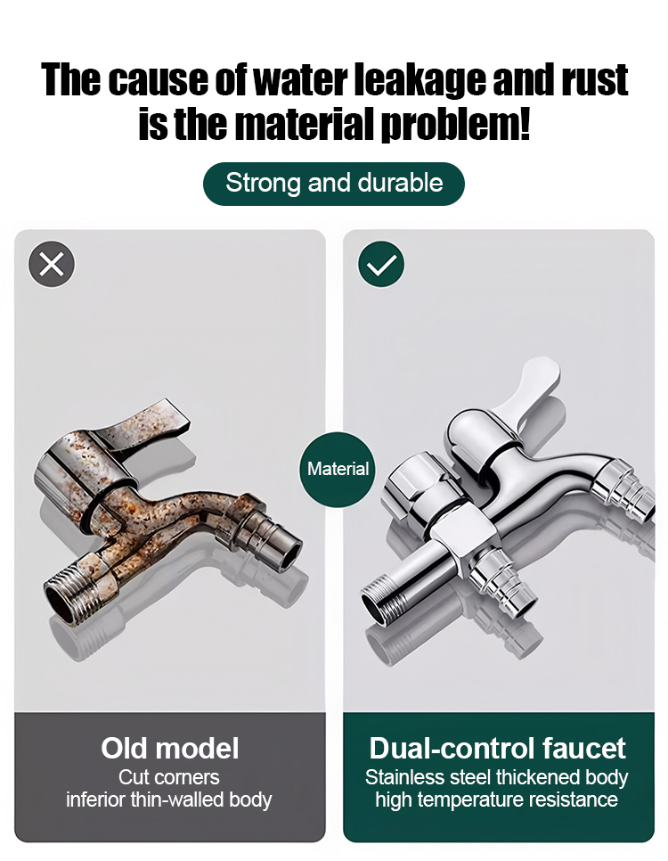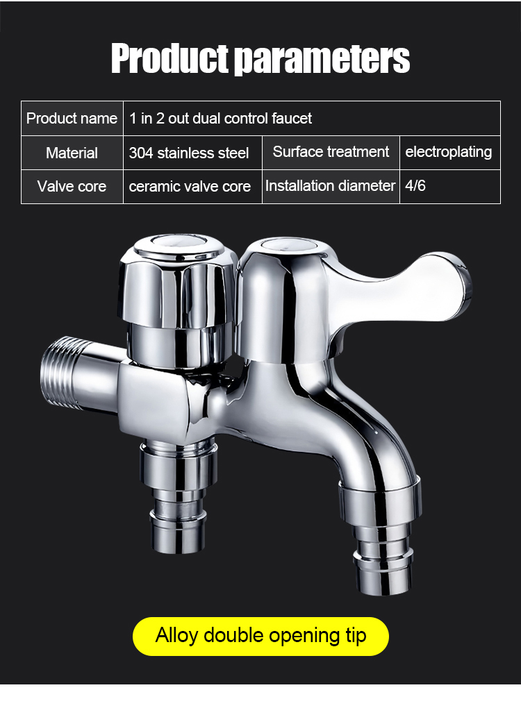 💧[Kup 1, a dostaniesz 1] 💧304 stal nierdzewna kran domowy z pojedynczym wlotem i dwoma wylotami, odpowiedni na balkon, do pralki, na zewnątrz, na dziedziniec