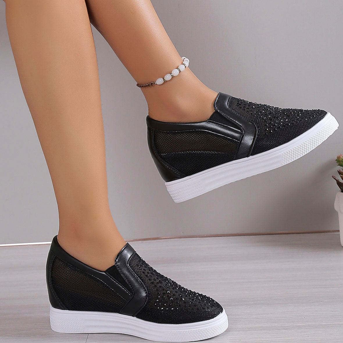 Damskie tenisówki z białymi kryształkami