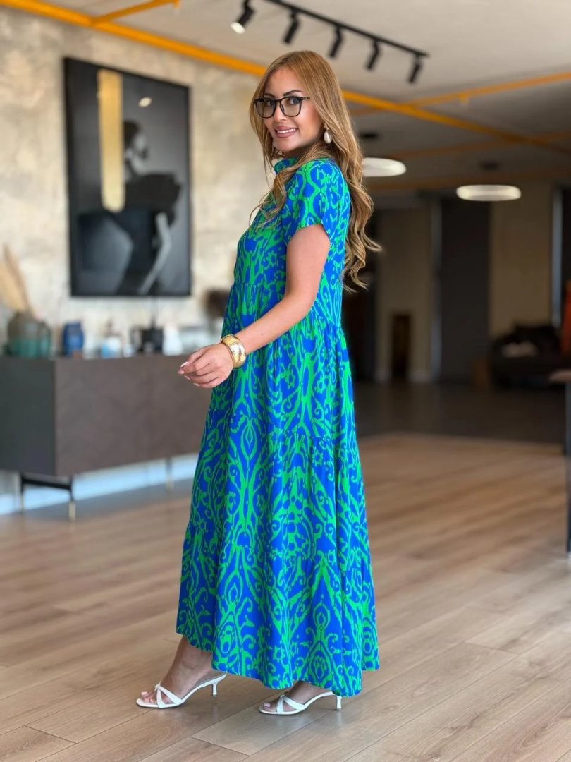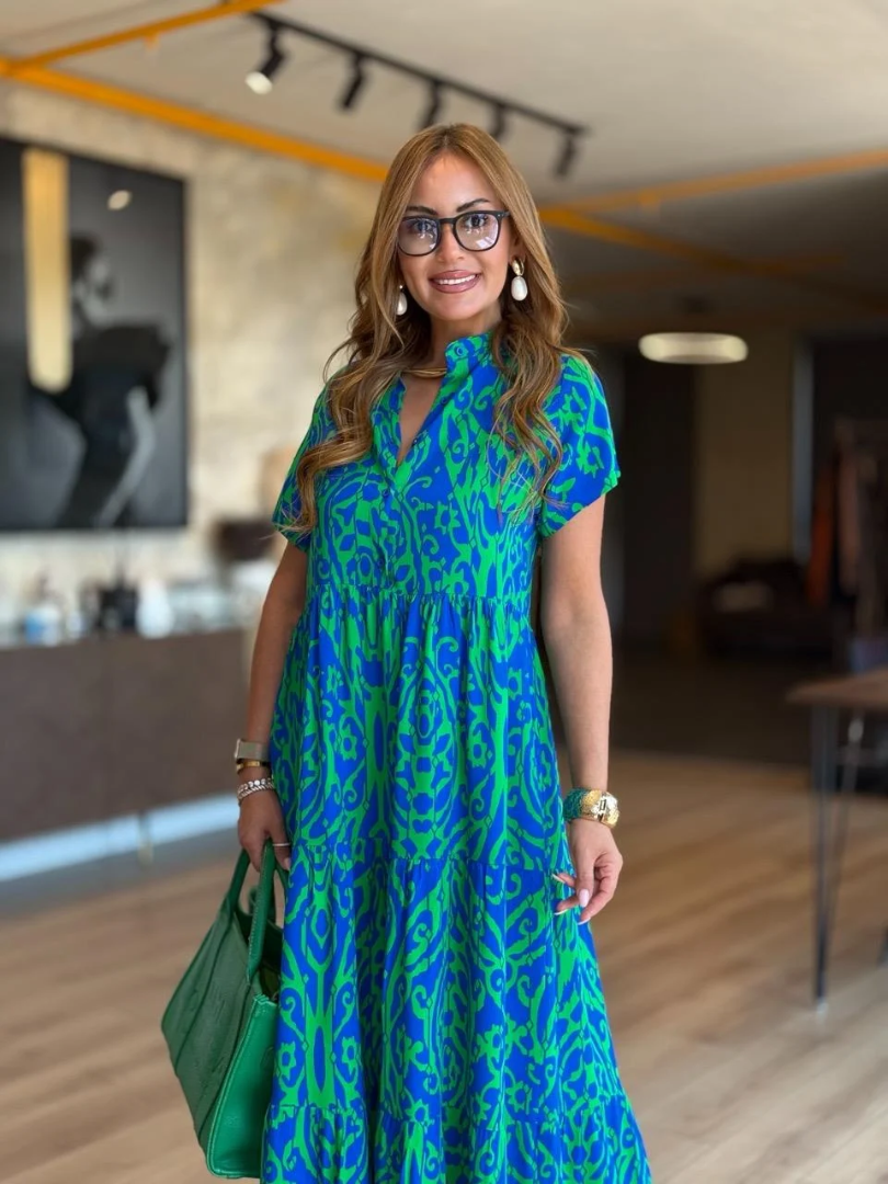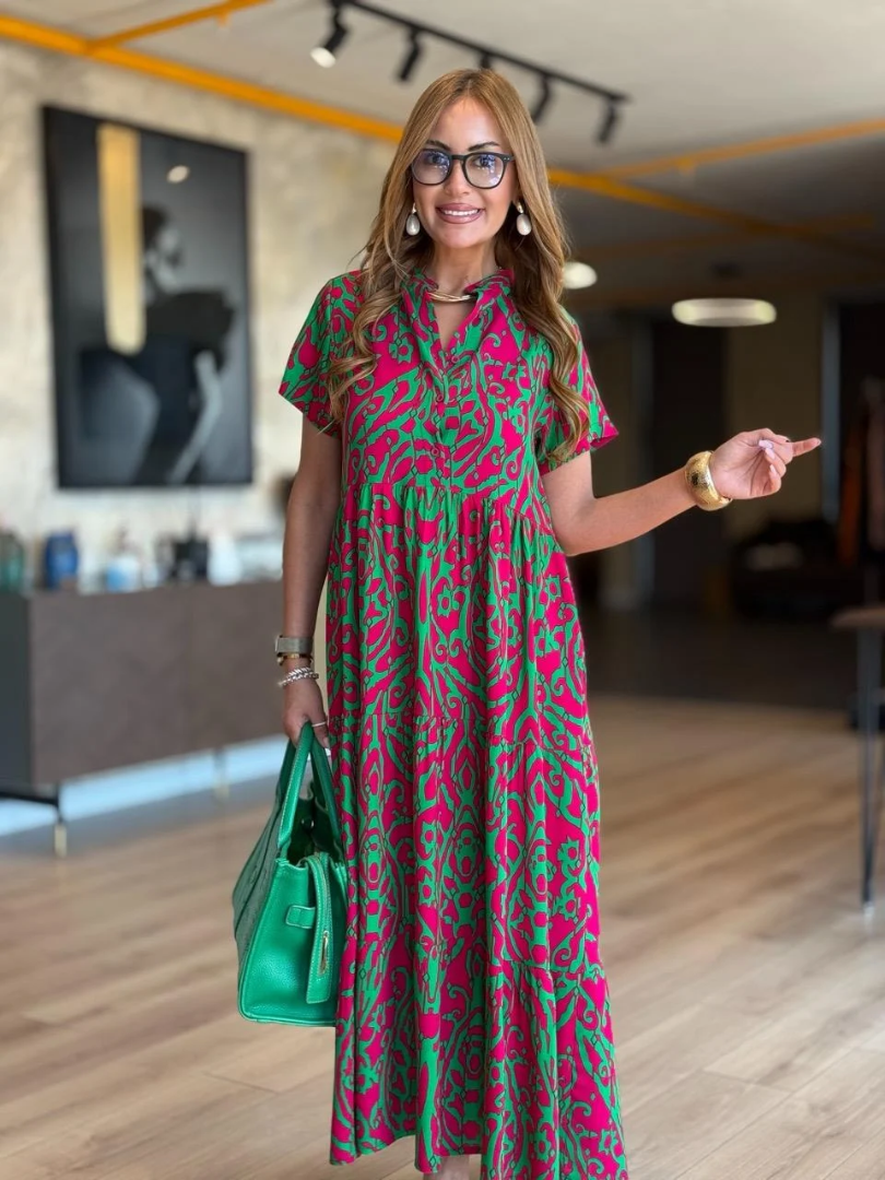【Kup jeden, a drugi dostaniesz gratis】🌸【S-5XL】Elegancka, swobodna sukienka damska z nadrukiem i dekoltem w serek🌸