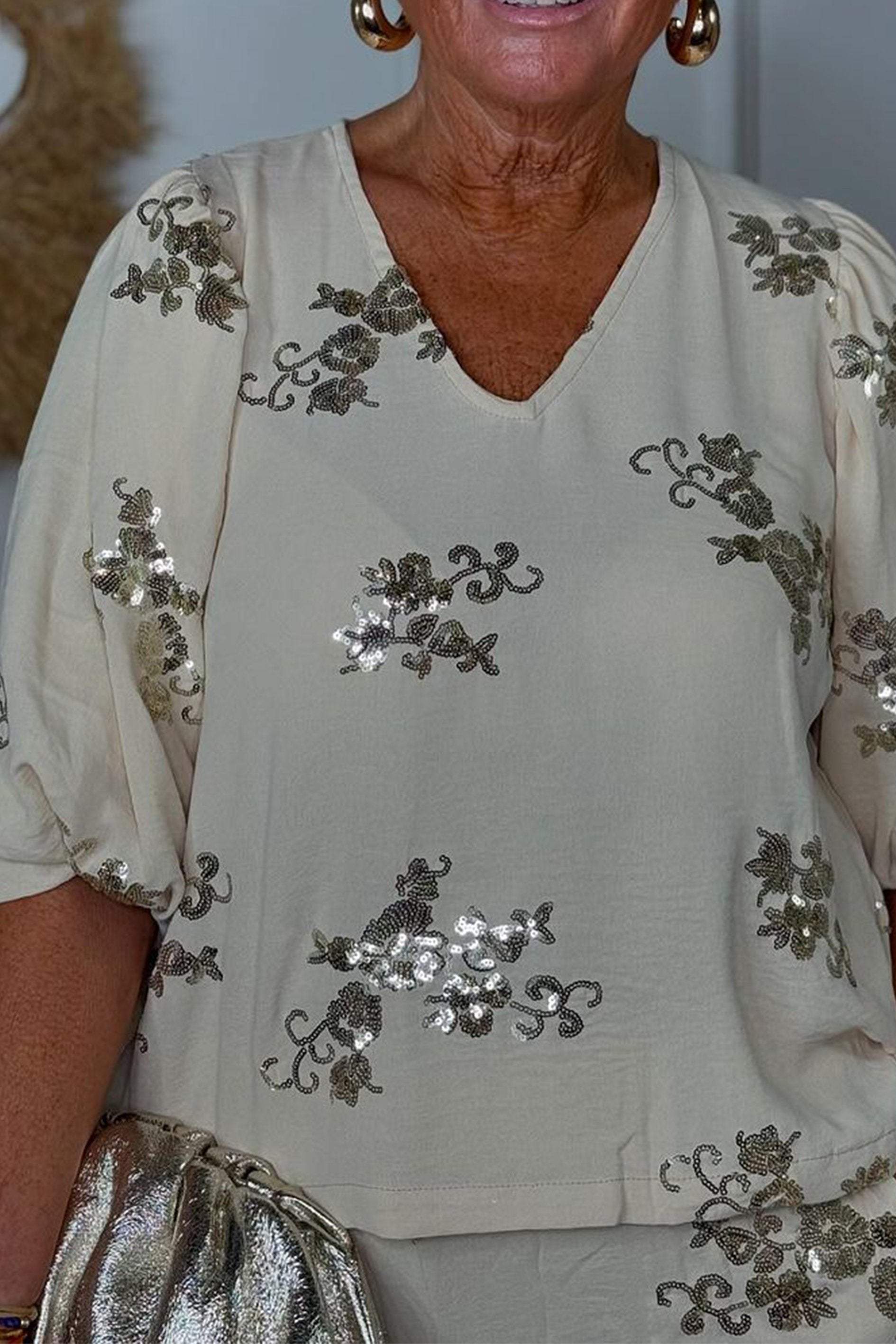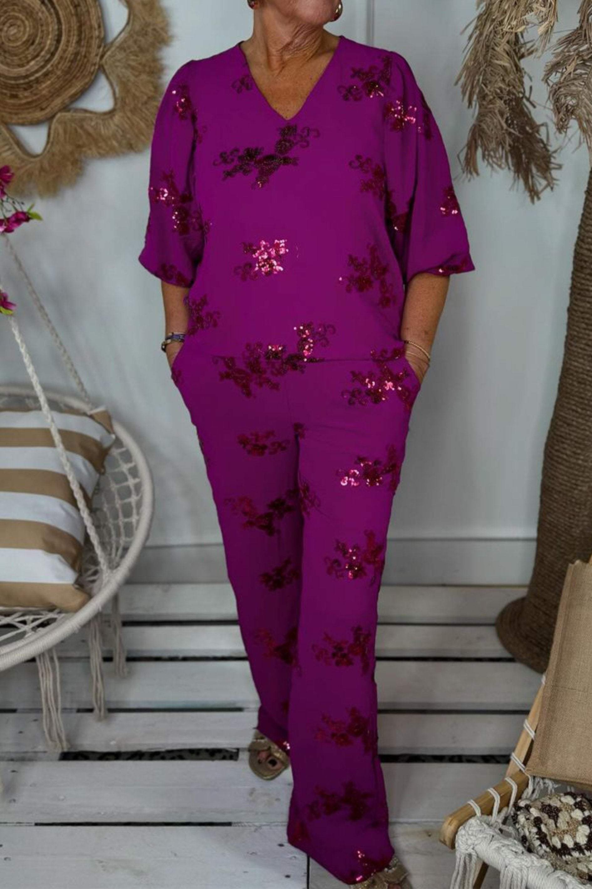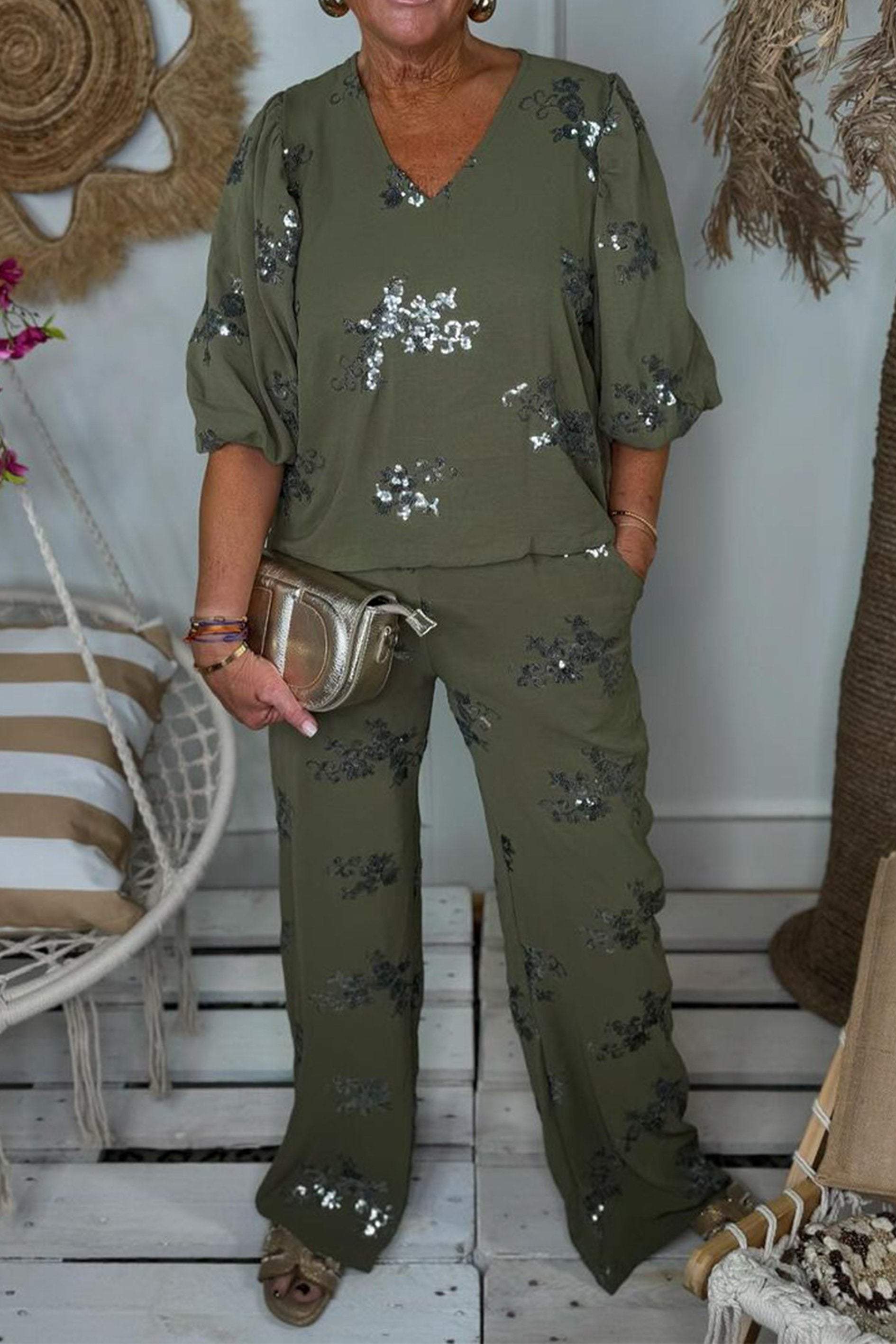 Komplet top i spodnie haftowane cekinami