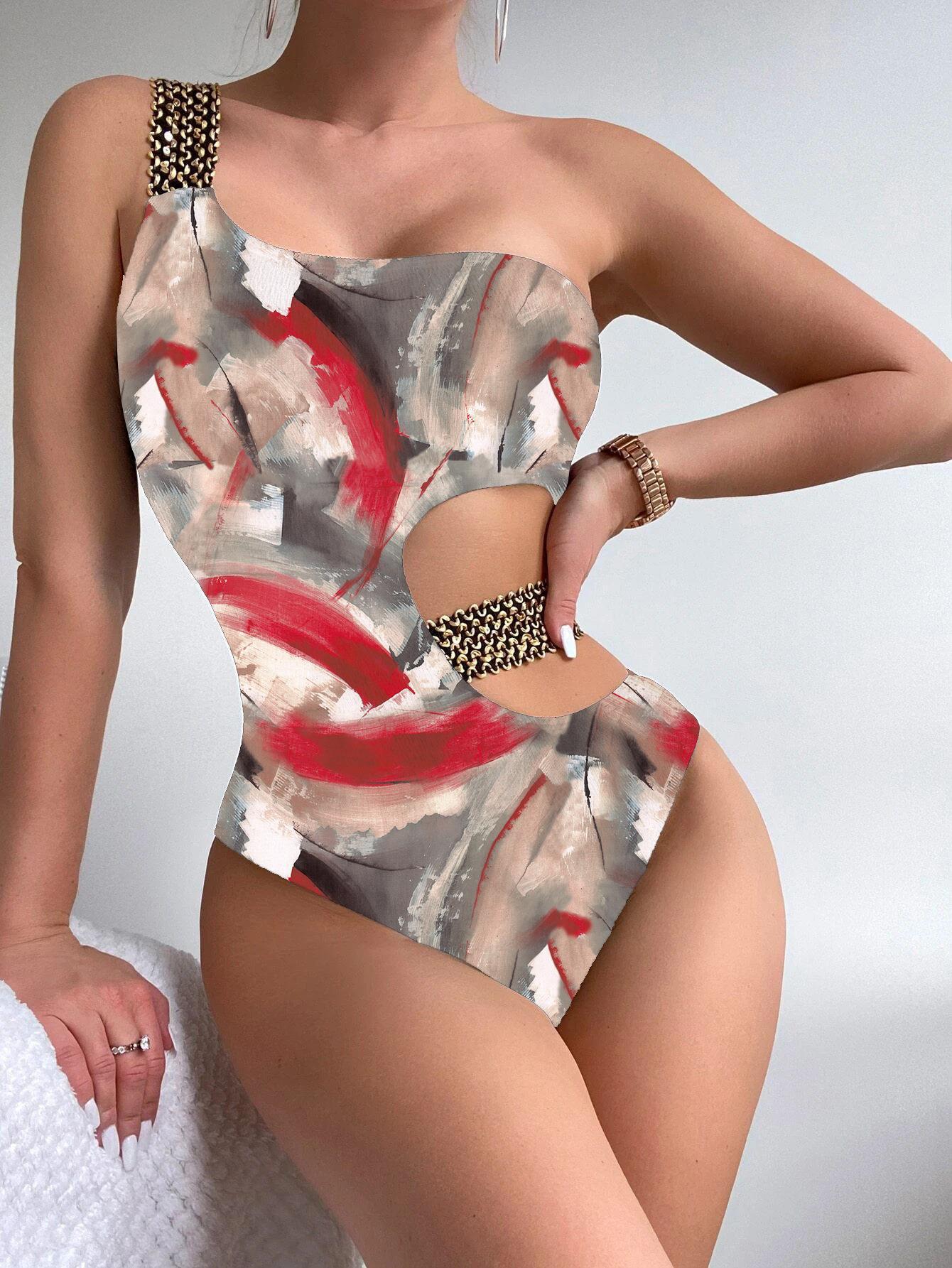 Damskie seksowne bikini plażowe z metalowymi blokami kolorów