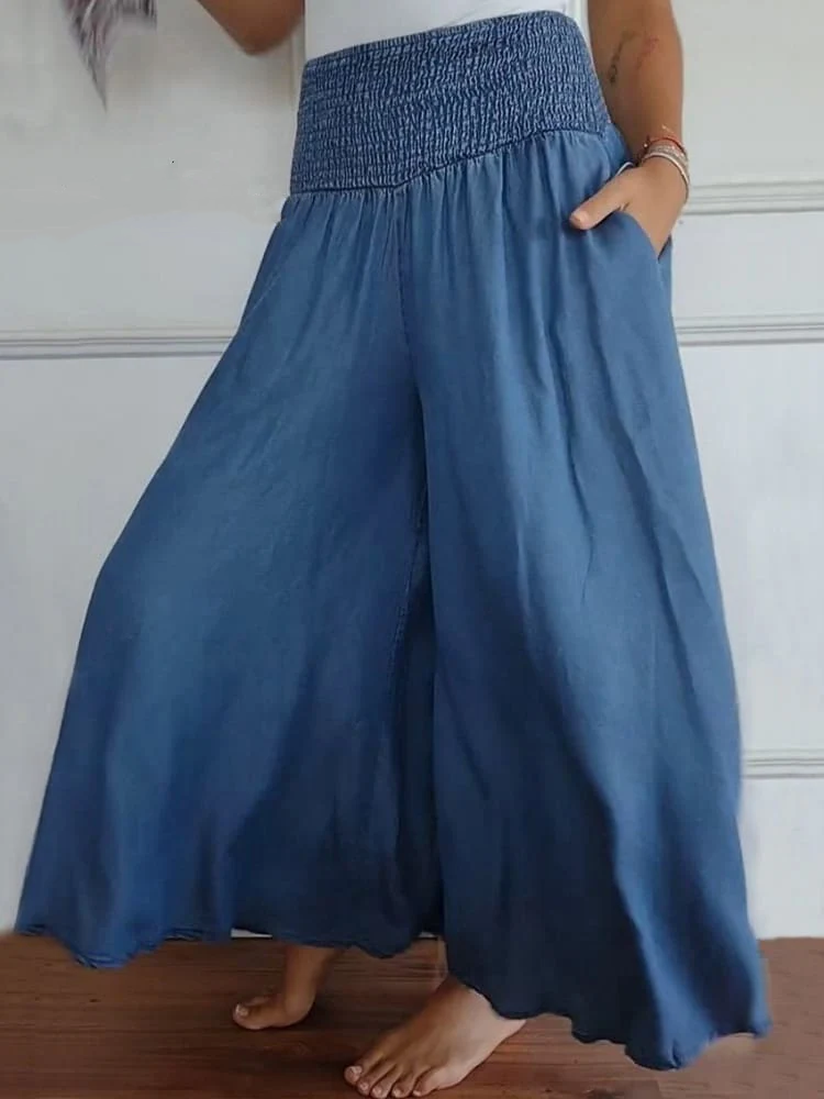 Damskie dżinsy z szerokimi nogami, wysokim talią i kieszeniami
