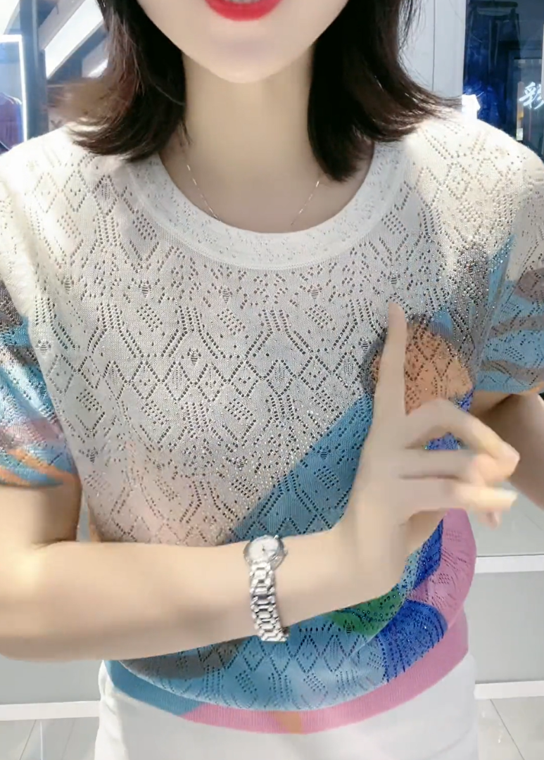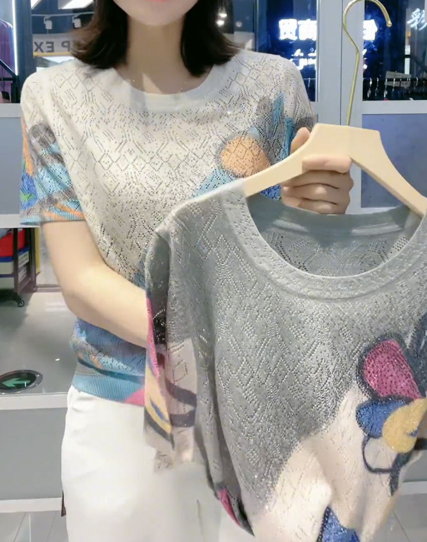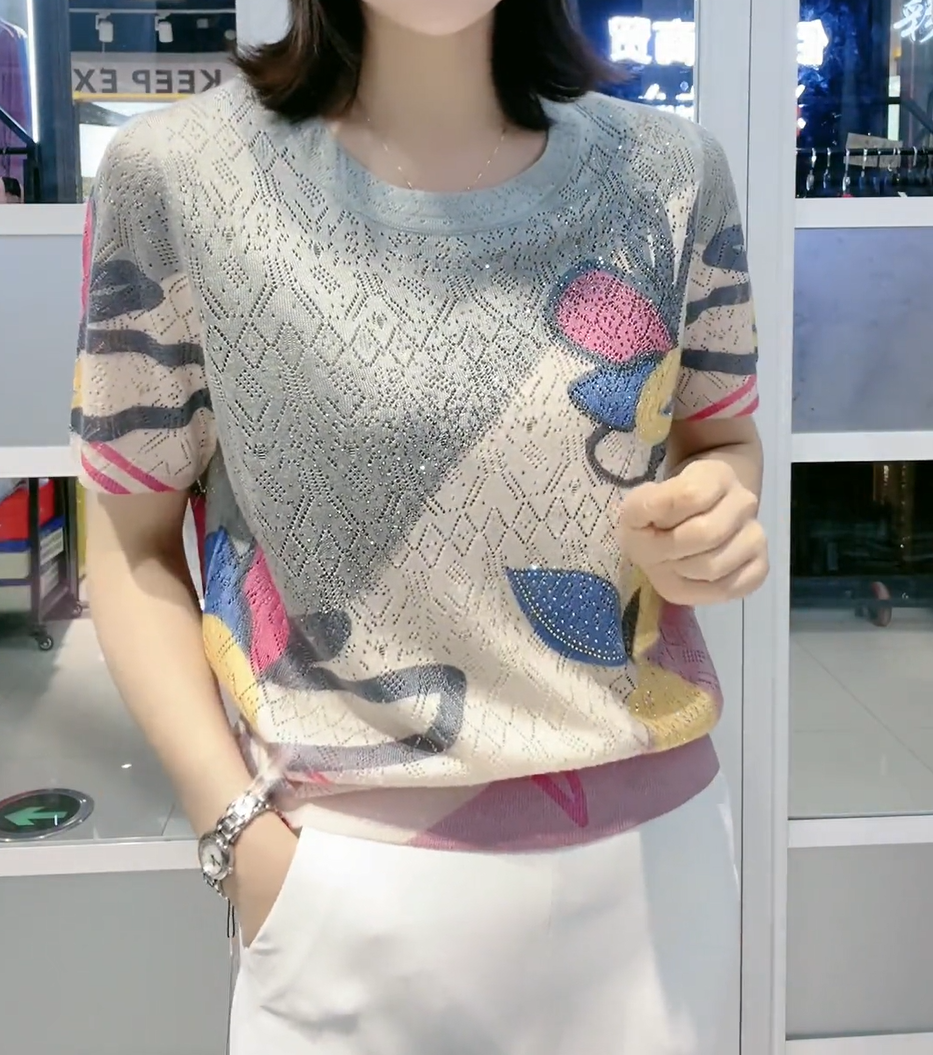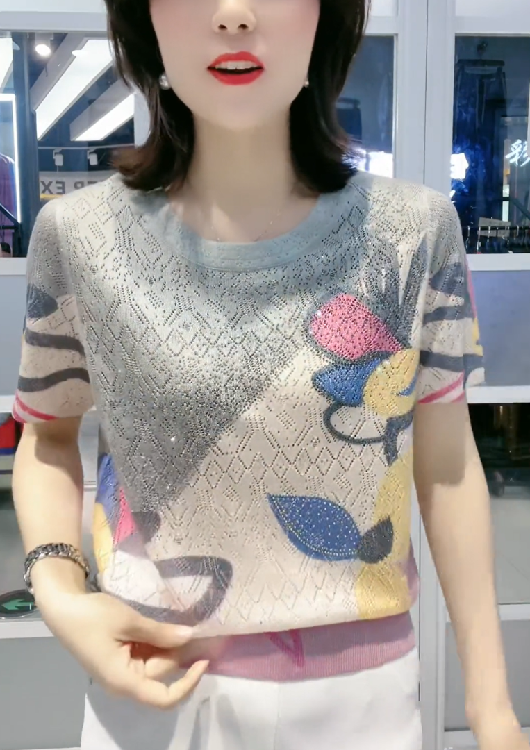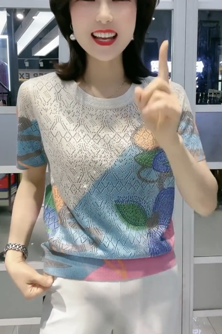 【L-5XL】👚 Nowa modna koszulka z okrągłym kołnierzykiem i diamentowym wzorem, uniwersalna i dopasowana
