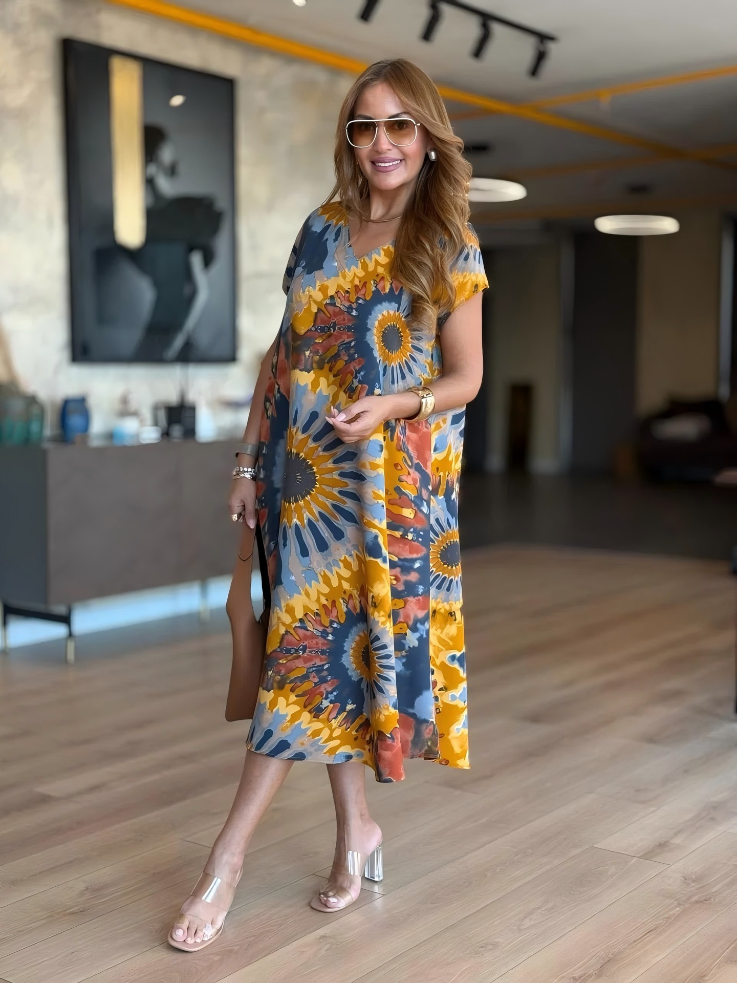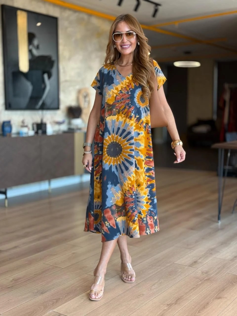 [Kup 1, a 1 dostaniesz gratis]👗【S-5XL】💜 Elegancka i wygodna sukienka z dekoltem w serek, dostępna w 4 kolorach