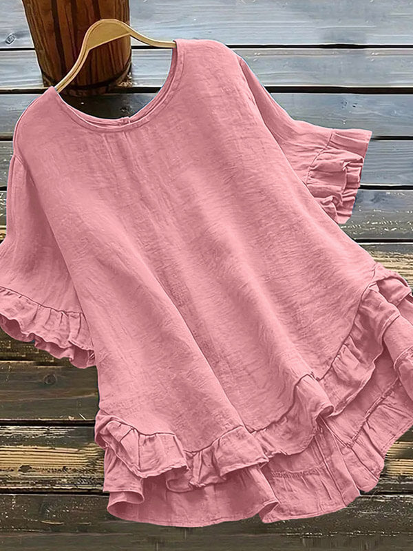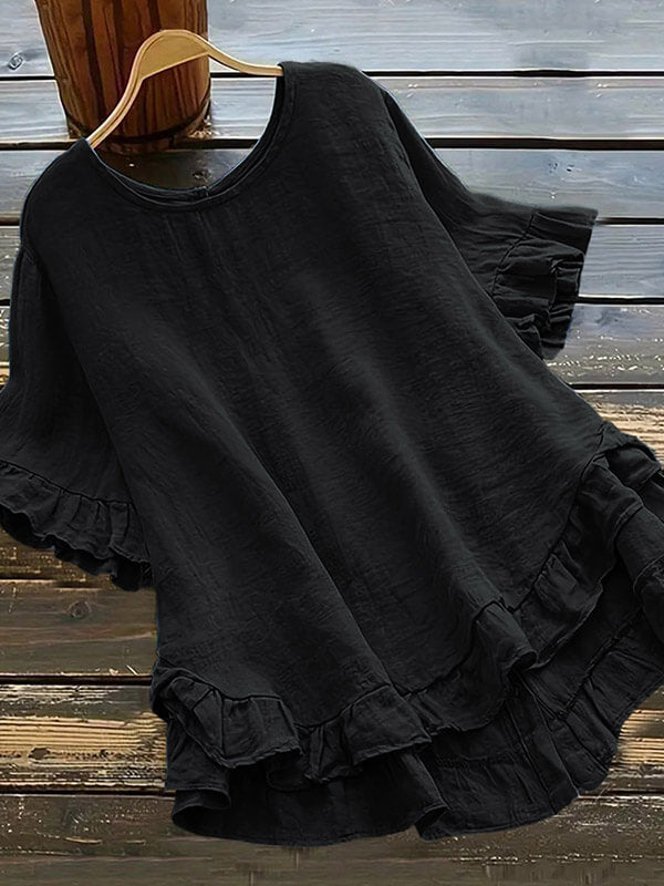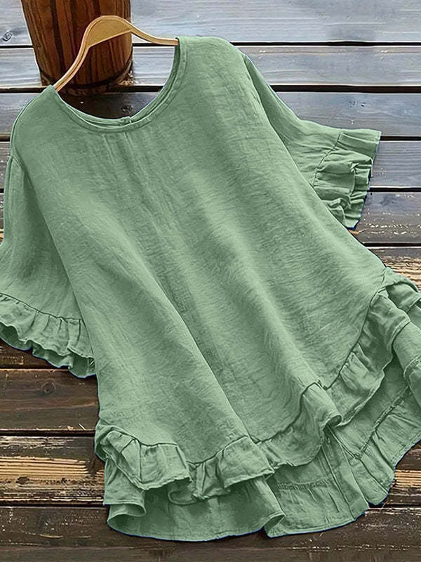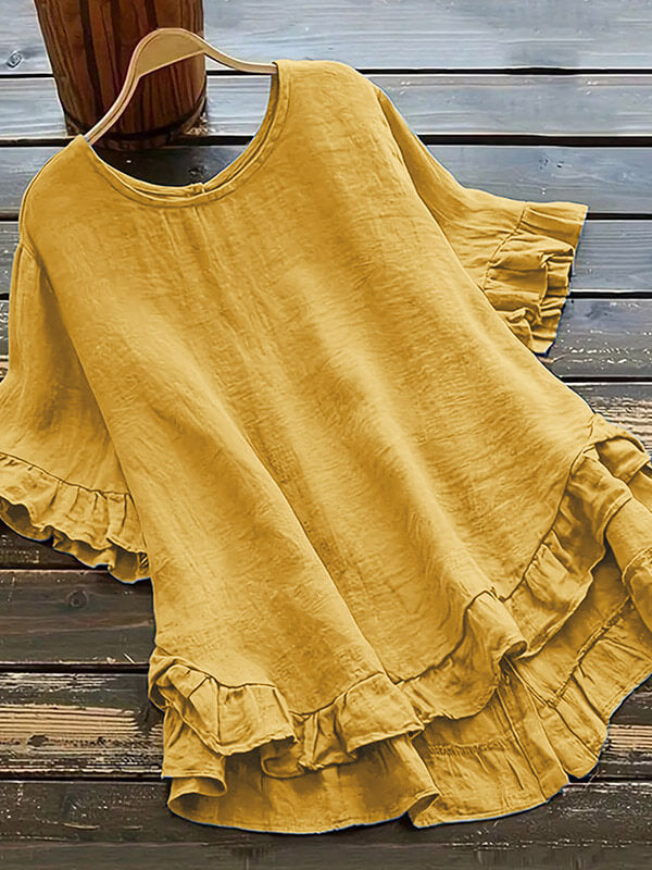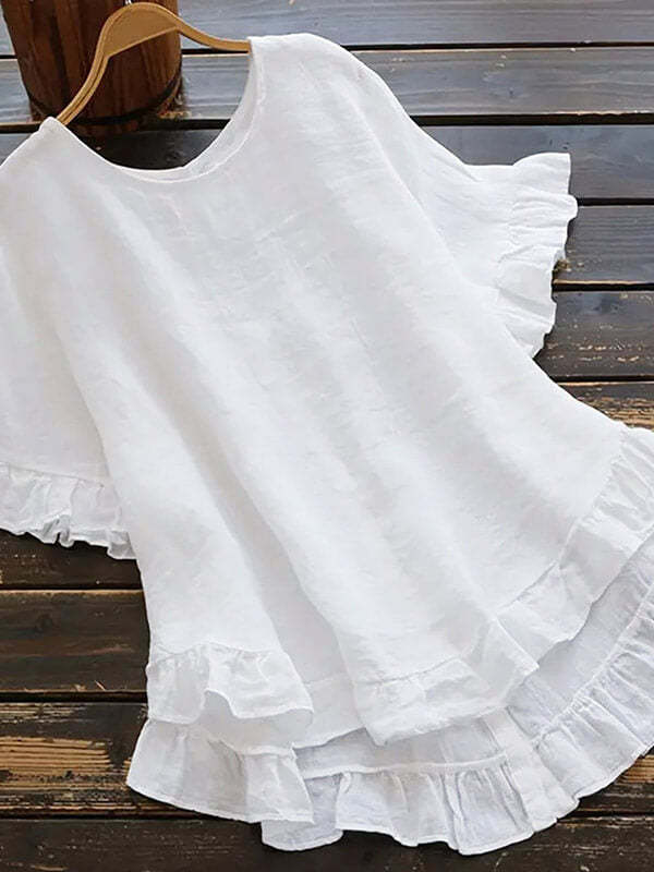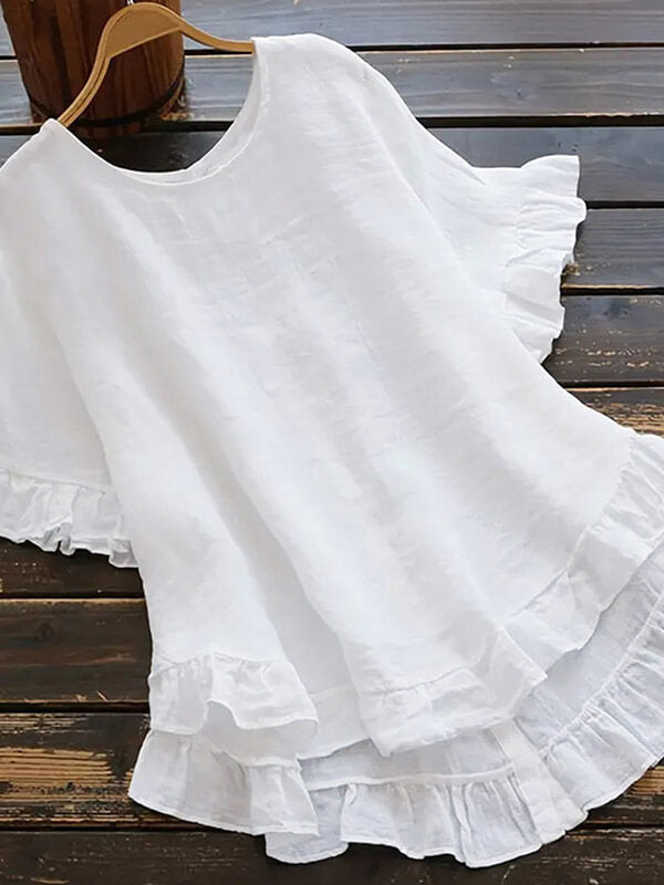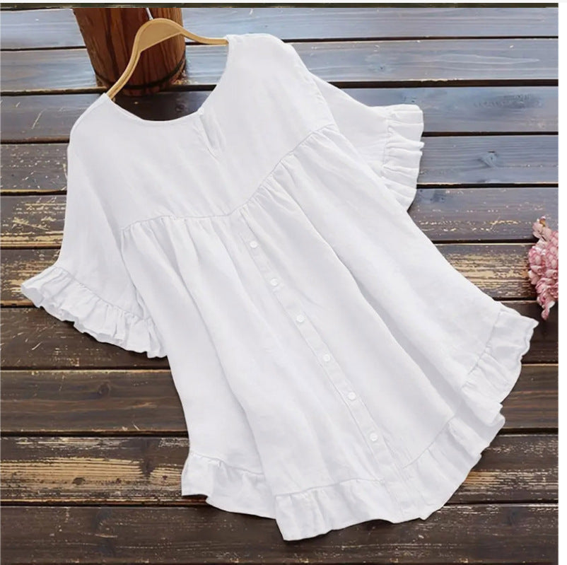Zapinana na guziki koszula z bawełny i lnu z falbaną