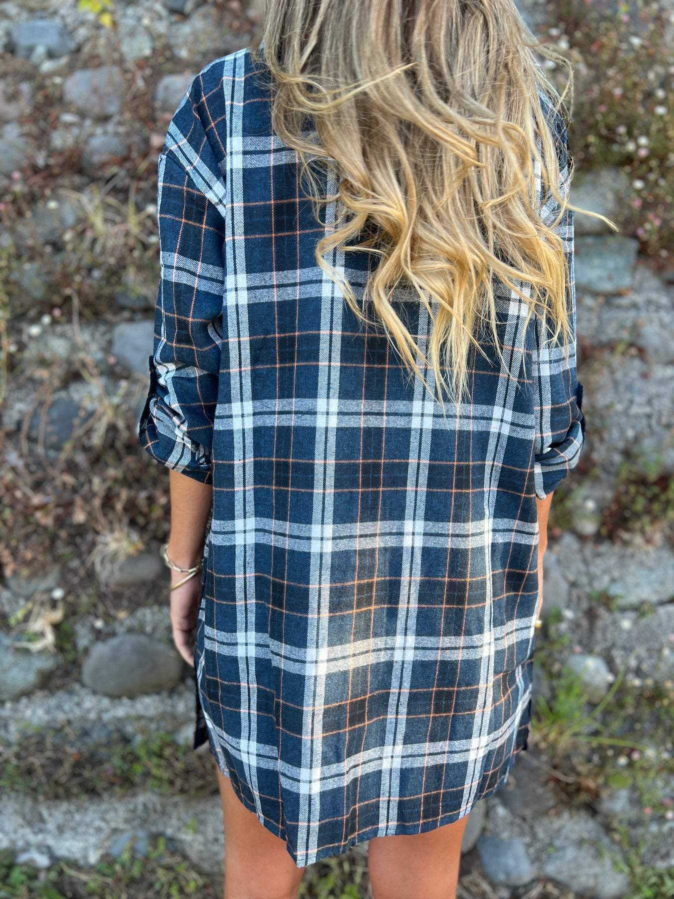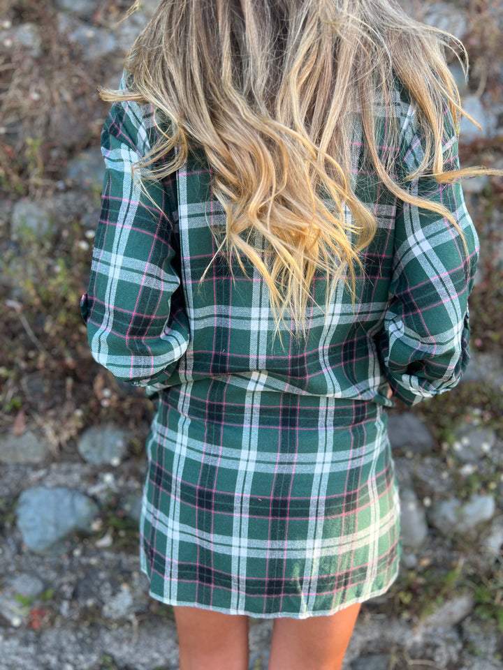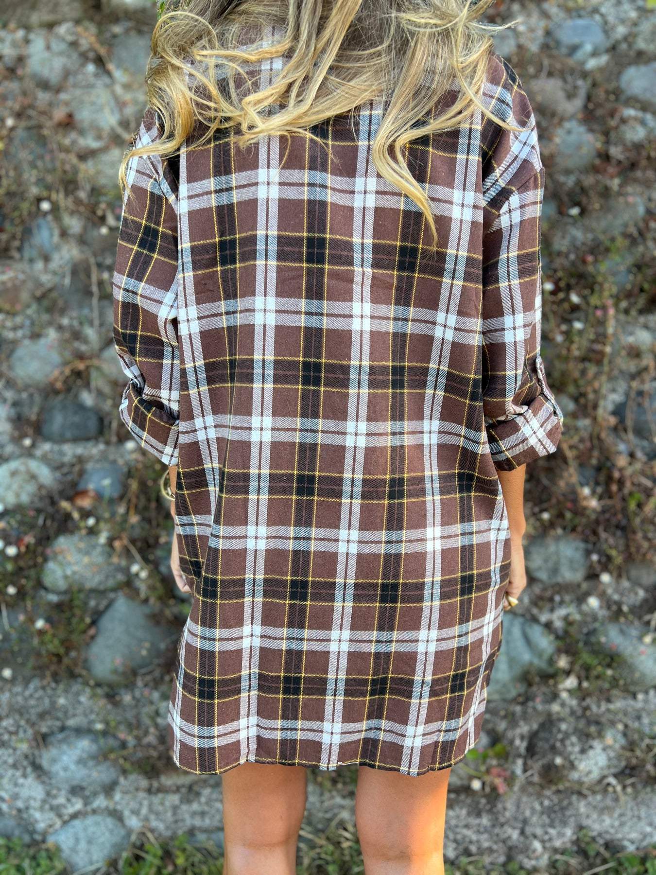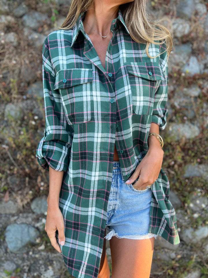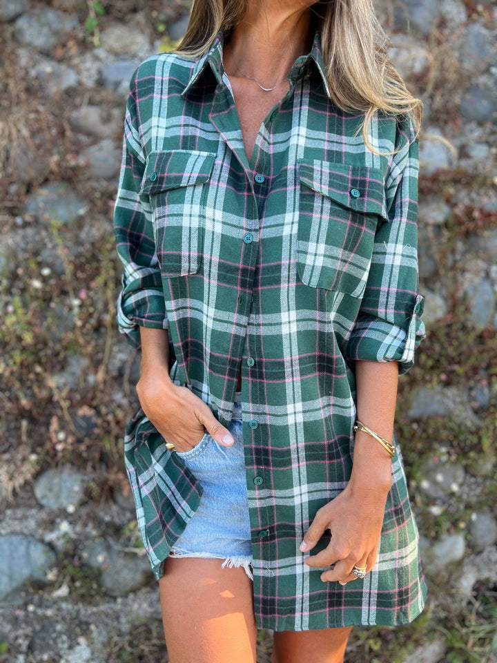 Koszula w kratę z klapami i średnim rękawem