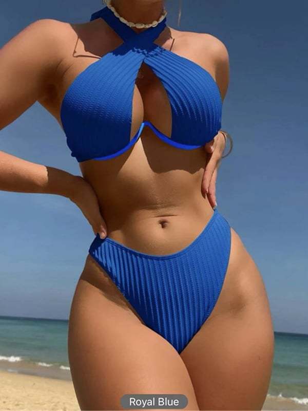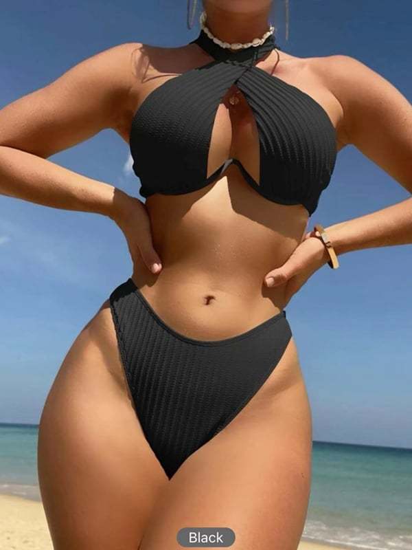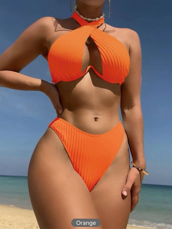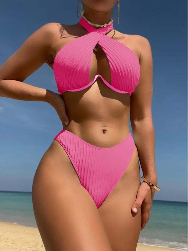 Damski dwuczęściowy seksowny strój kąpielowy bikini w jednolitym kolorze