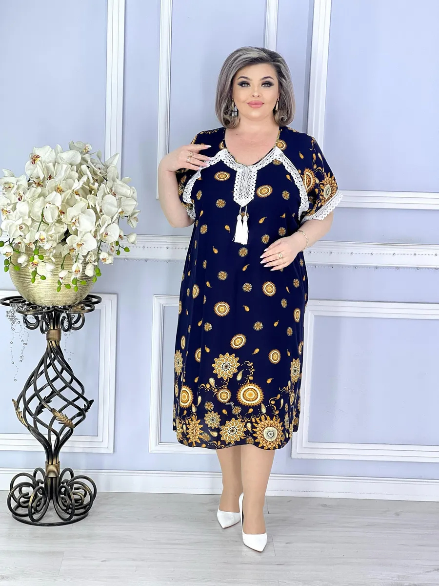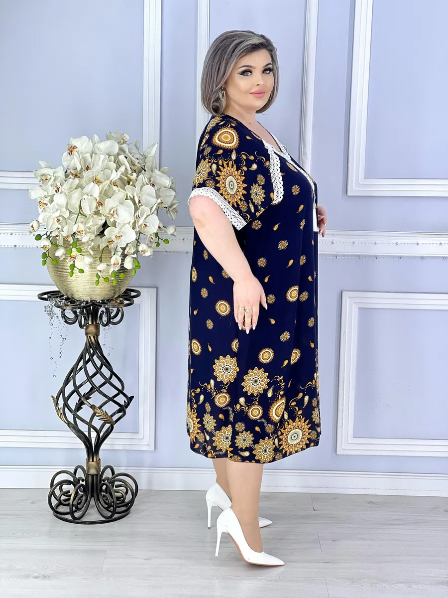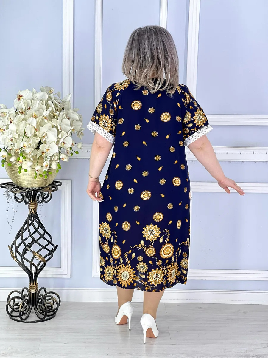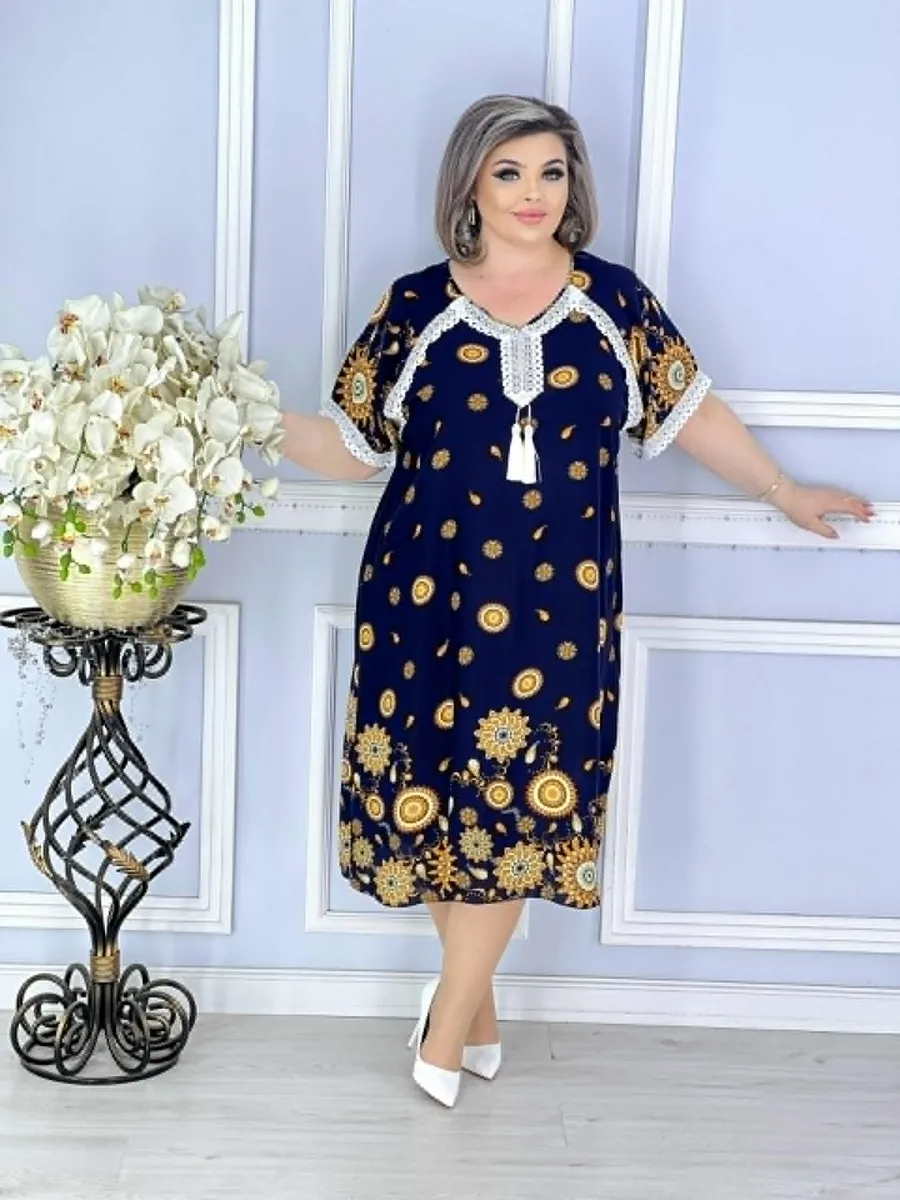 👗 【S-5XL】Sukienka z haftowanym nadrukiem - 🔸 Oryginalny geometryczny wzór