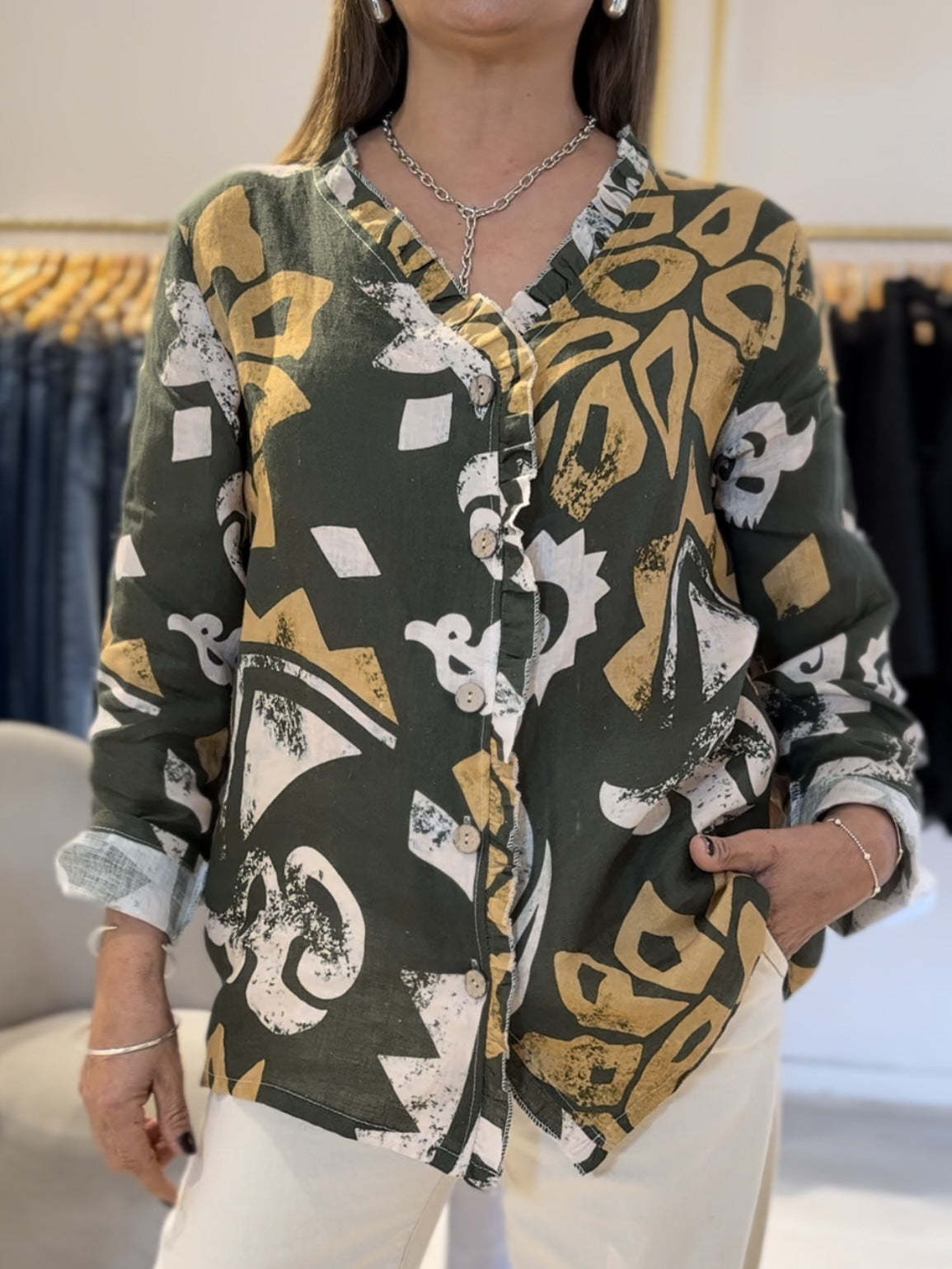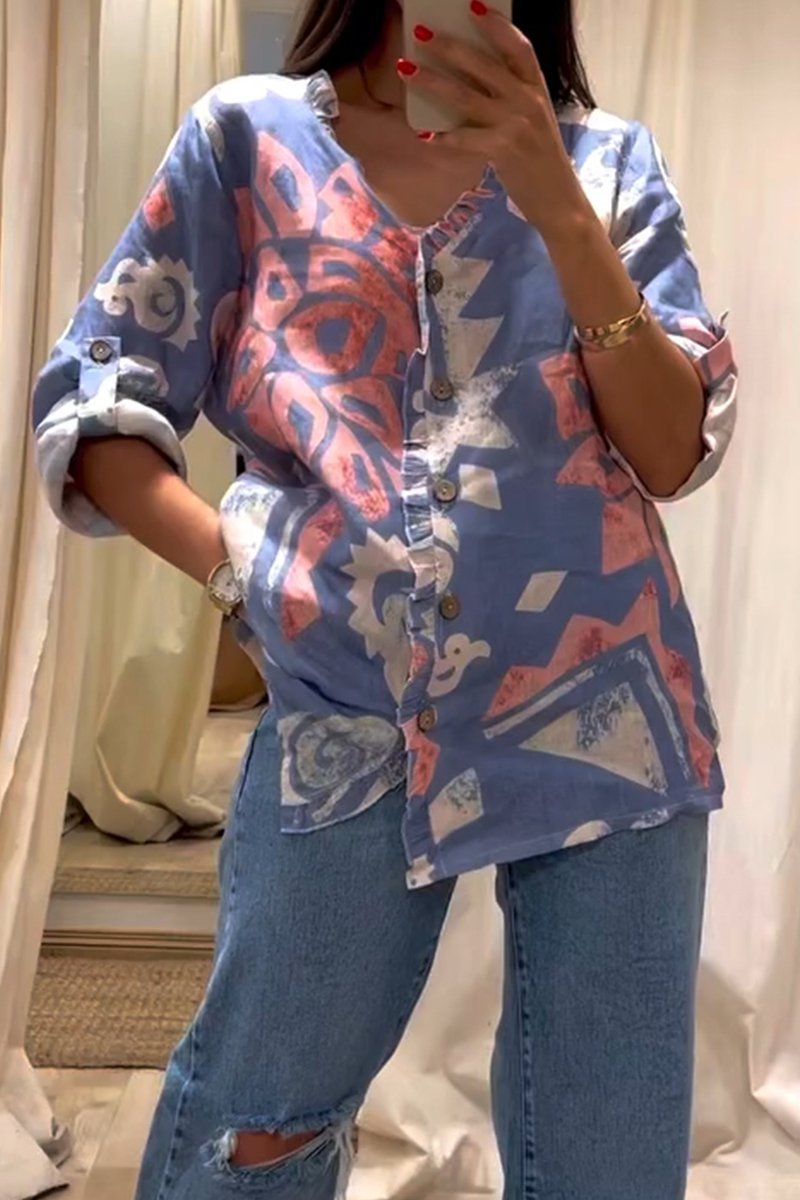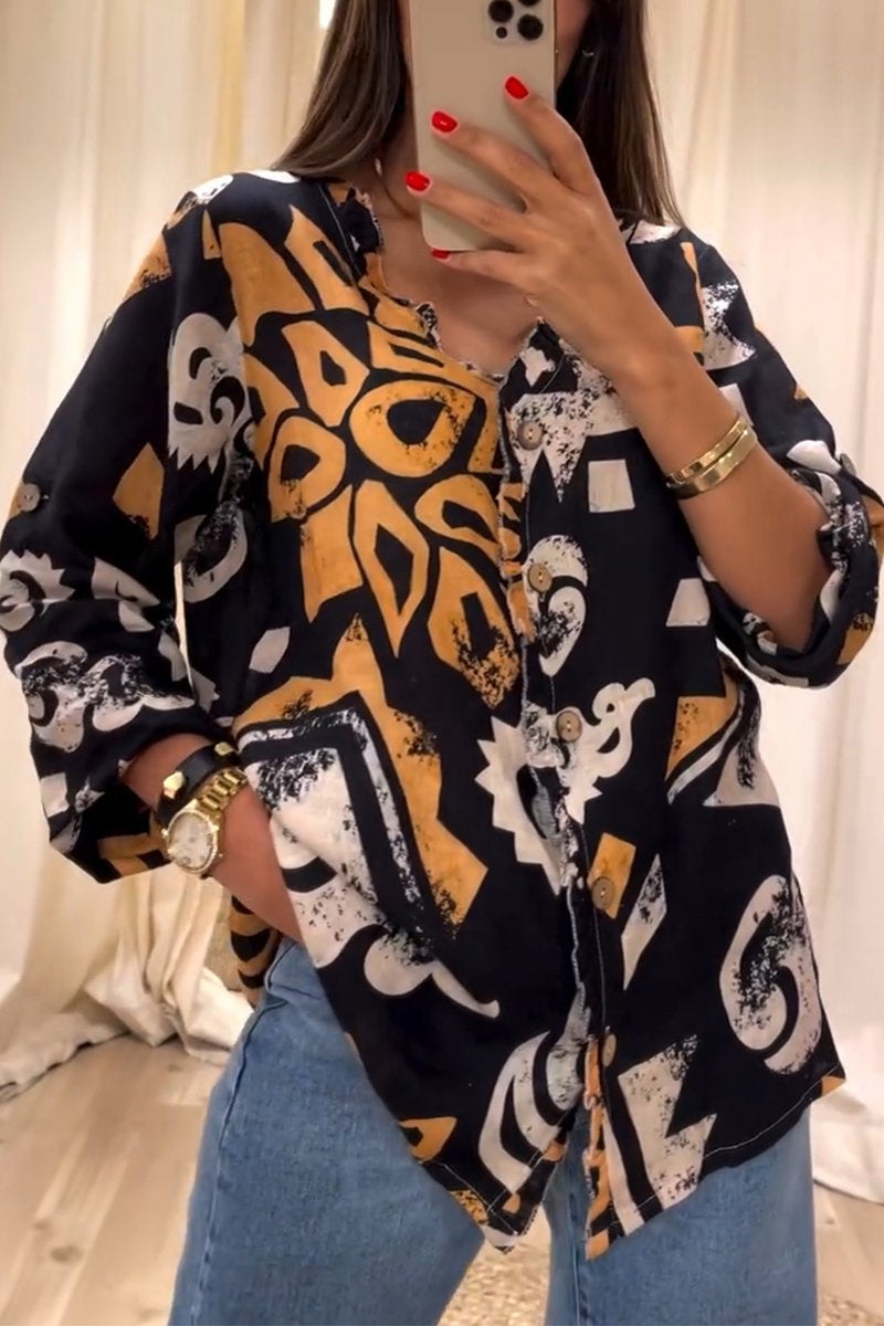 Damska koszula z długim rękawem i nadrukiem w stylu casual