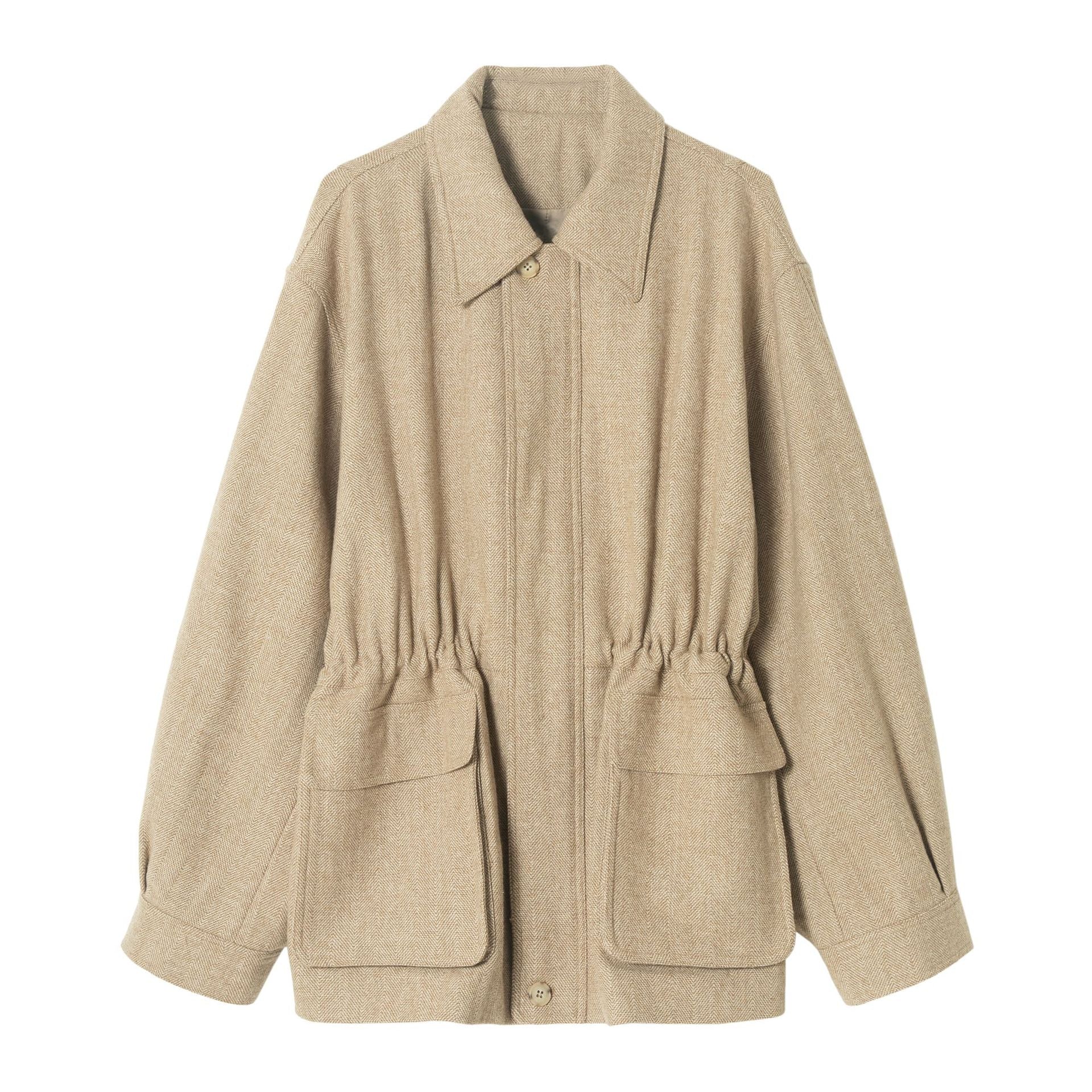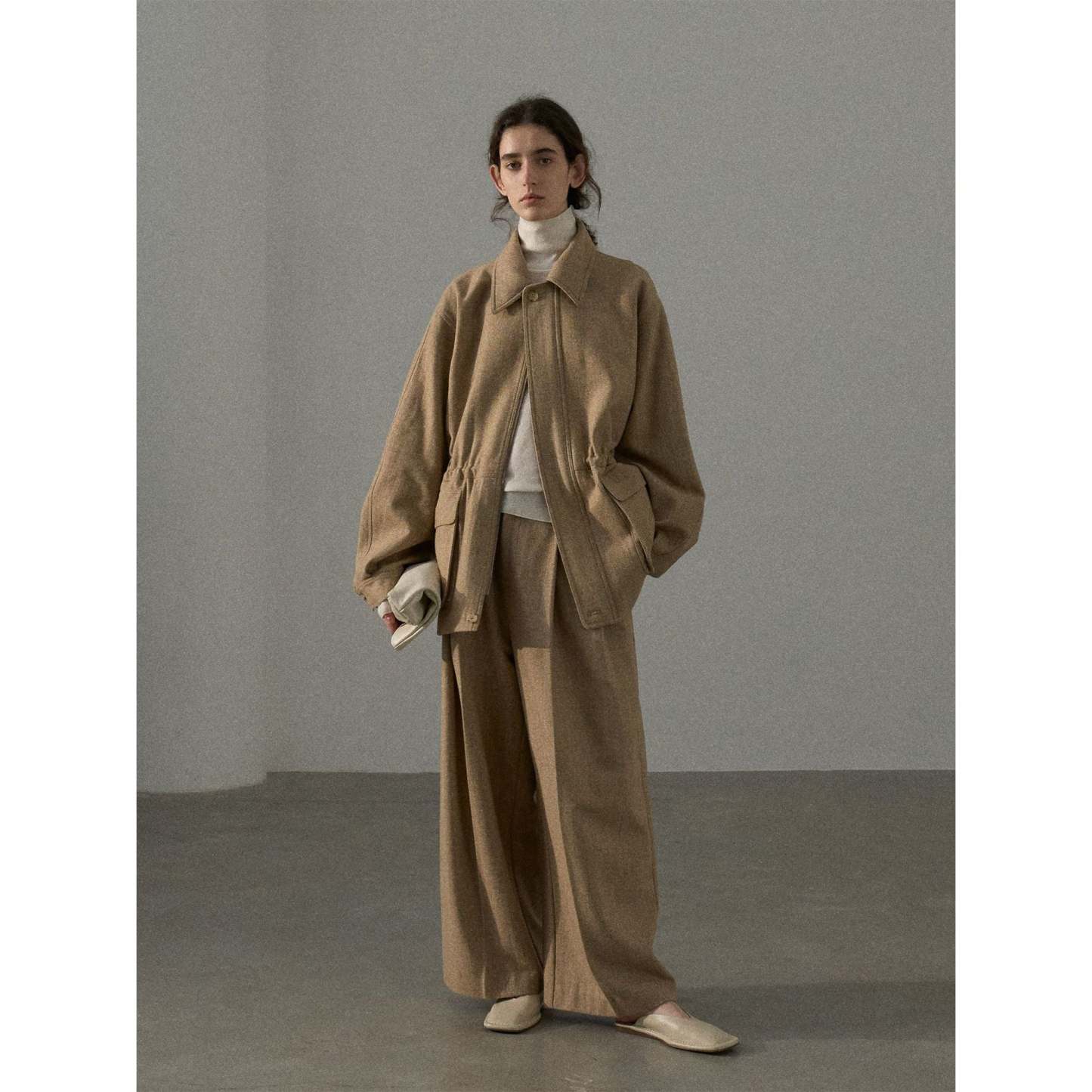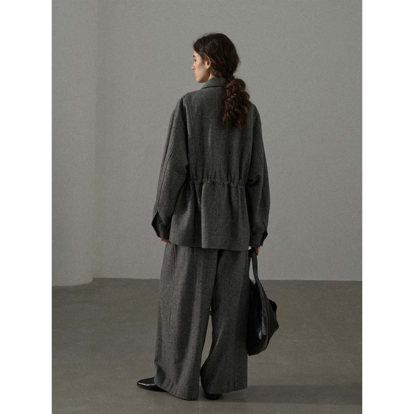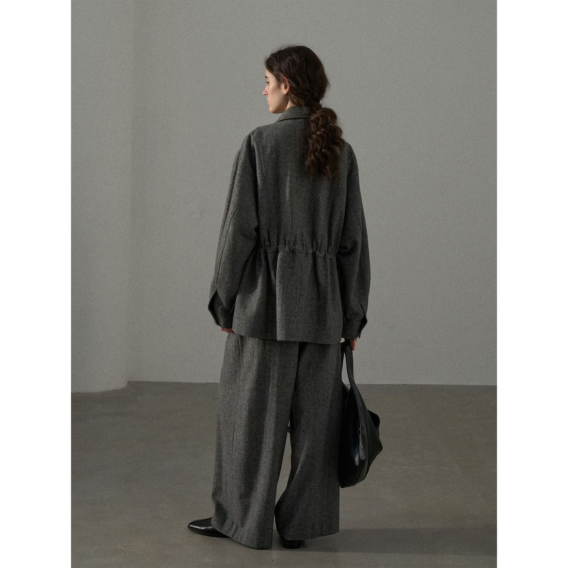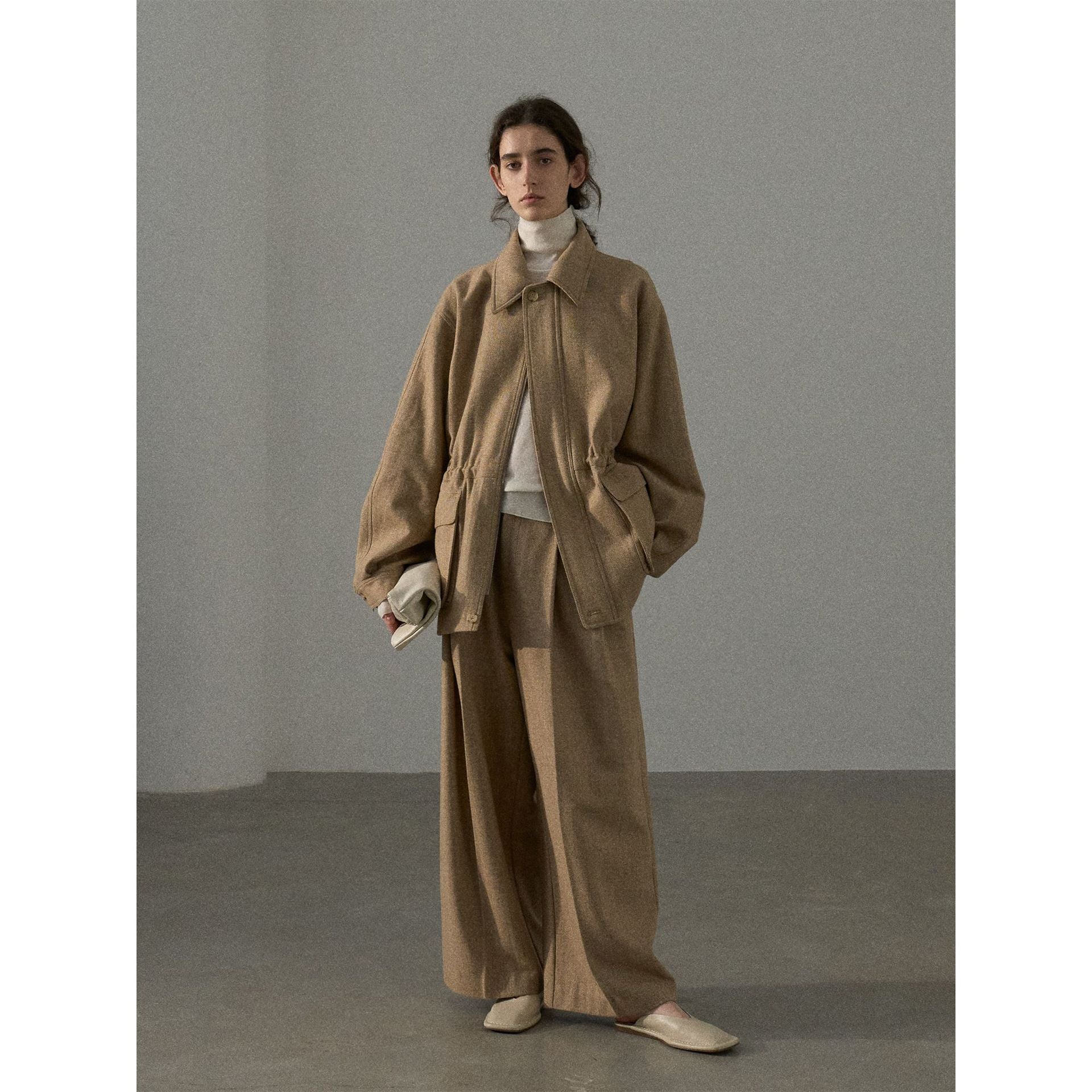 Jesienna nowa wełniana parka z wzorem jodełki, wiatrówka, duża kieszeń naszywana, wełniany płaszcz damski