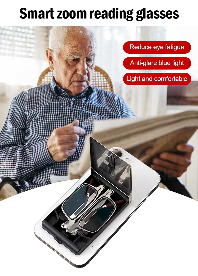 👴👵👓Nowe składane okulary do czytania, które można przymocować do telefonu komórkowego. Wysokiej rozdzielczości okulary blokujące niebieskie światło i zapobiegające zmęczeniu.