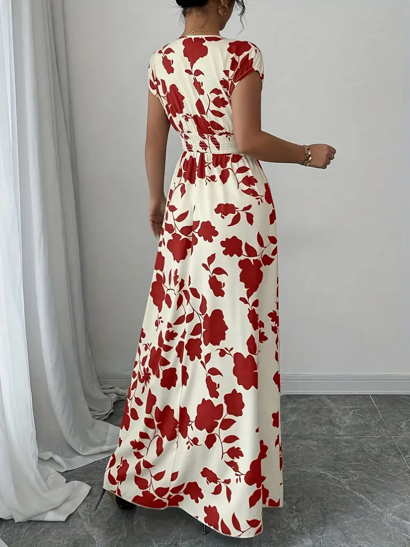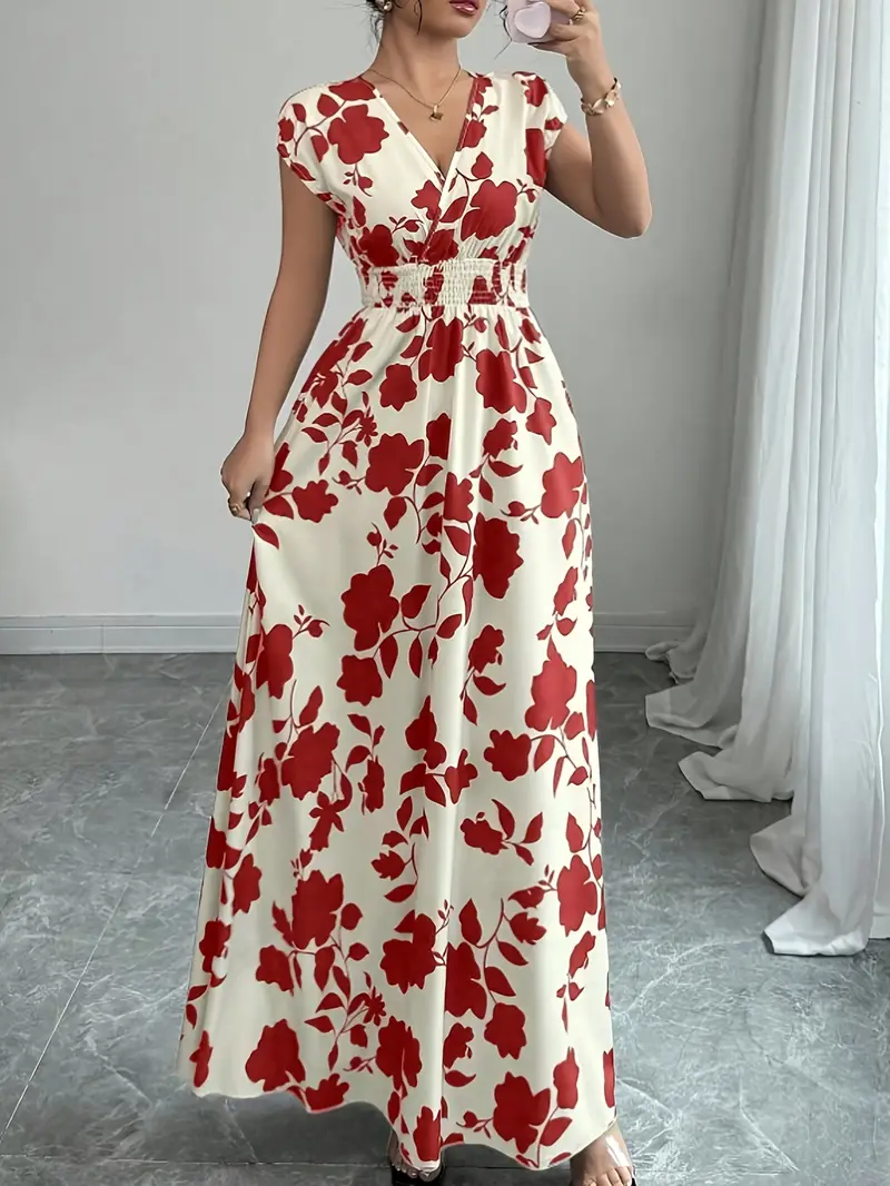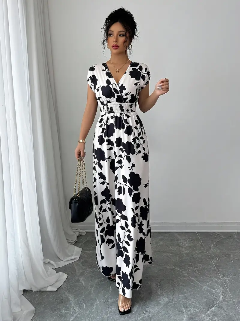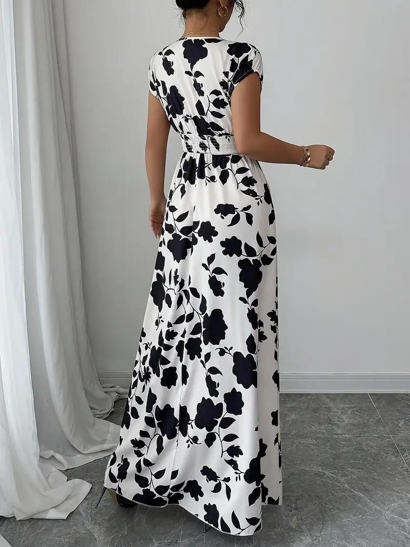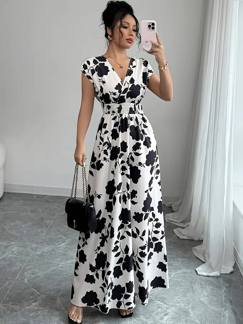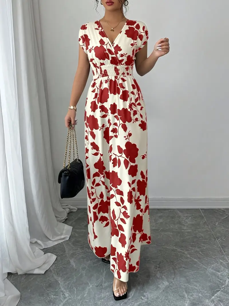 💜 Sukienka damska maxi z kwiatowym nadrukiem i dekoltem w serek