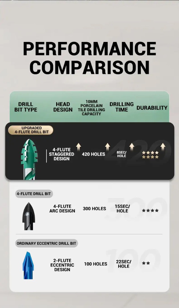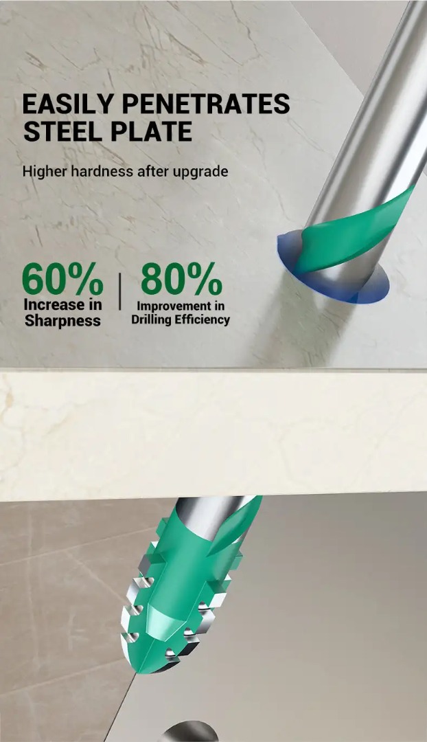 【6+8+10+12mm】【10 SZT.】Uniwersalne wiertło z 4 ząbkowanymi krawędziami do otwierania i powiększania otworów