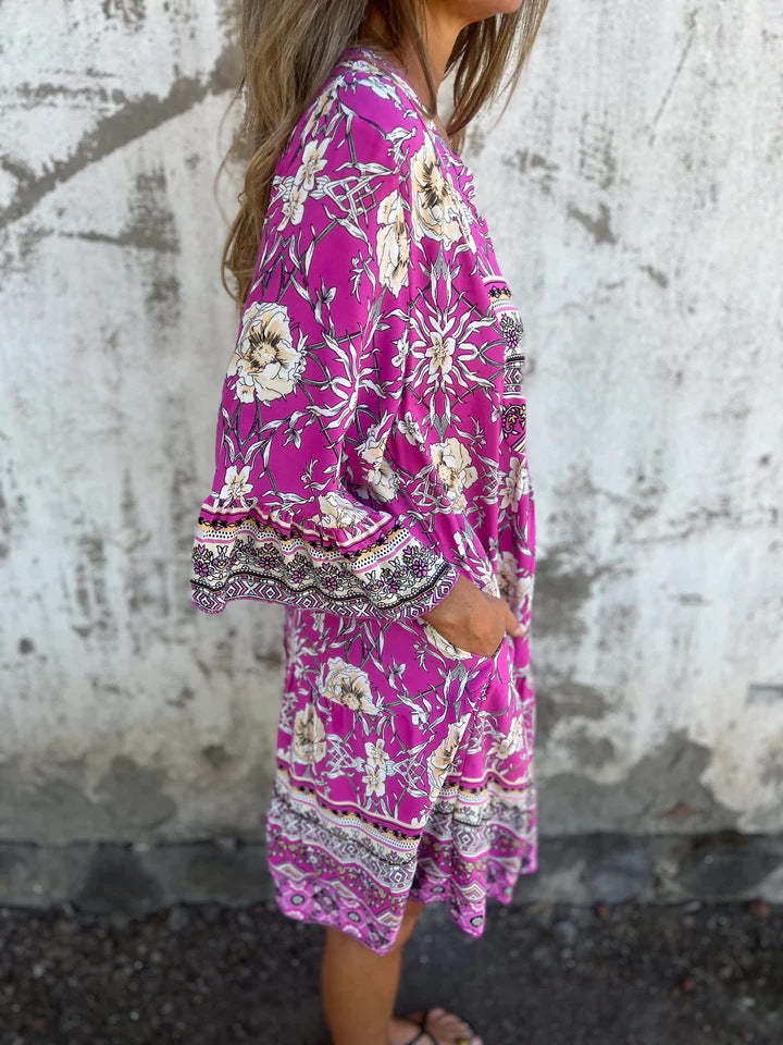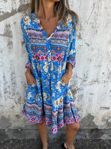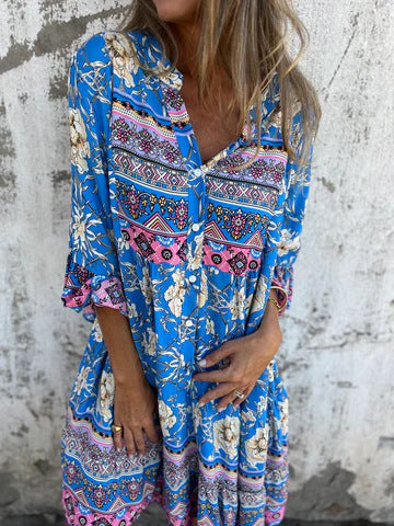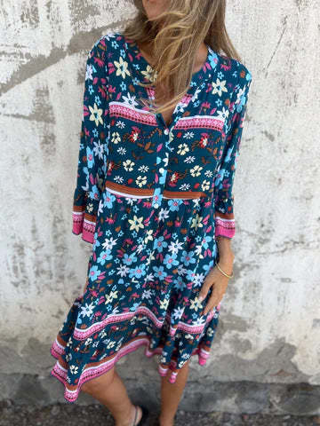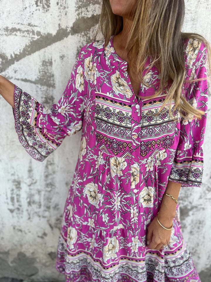 🔥NOWE WYPRZEDAŻE 2025 - 50% ZNIŻKI🔥Sukienka z dekoltem w serek i kwiatowym wzorem, zapinana na guziki