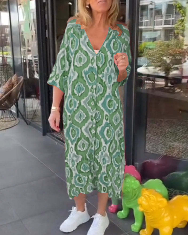 Sukienka maxi z modnym nadrukiem i pół rękawami