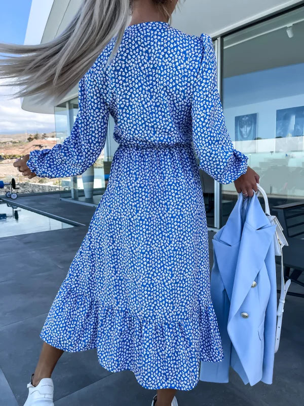 Patchworkowa sukienka w kwiaty z dekoltem w kształcie litery V