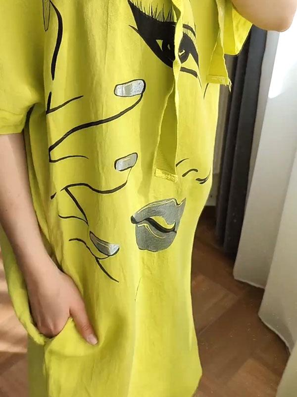 Sukienka z nadrukiem na wiosnę i lato, wykonana z bawełny i lnu