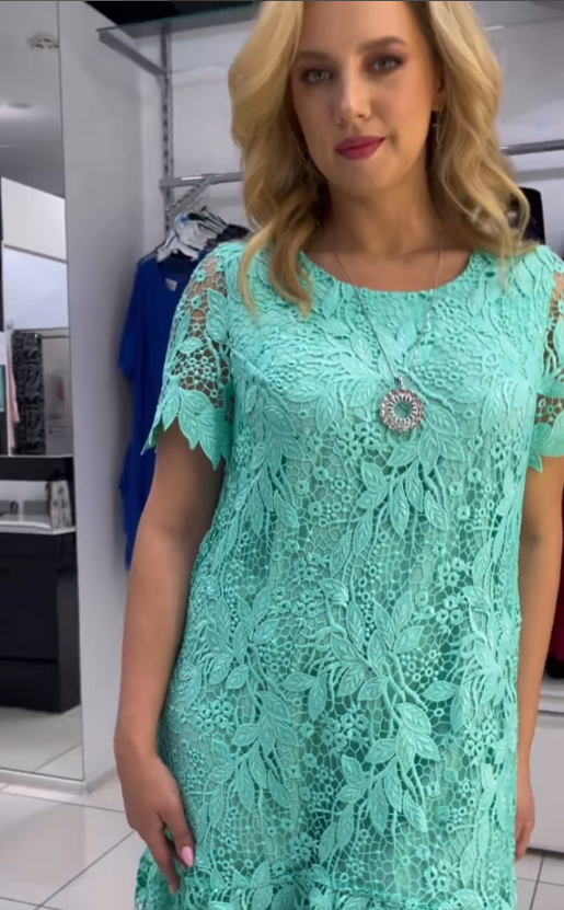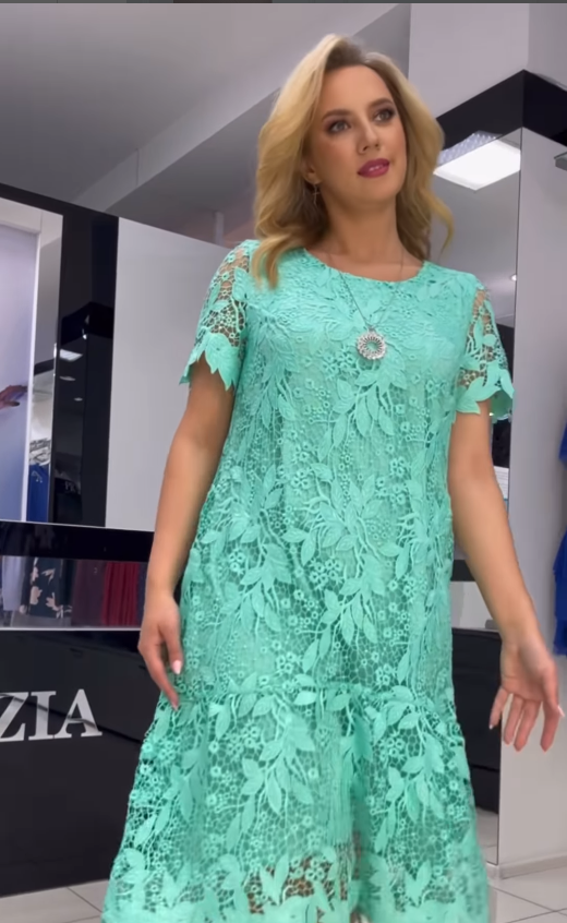 Niesamowita koronkowa sukienka w kolorze Tiffany 👗 Ładna podszewka z wiskozy i dół w kształcie słońca