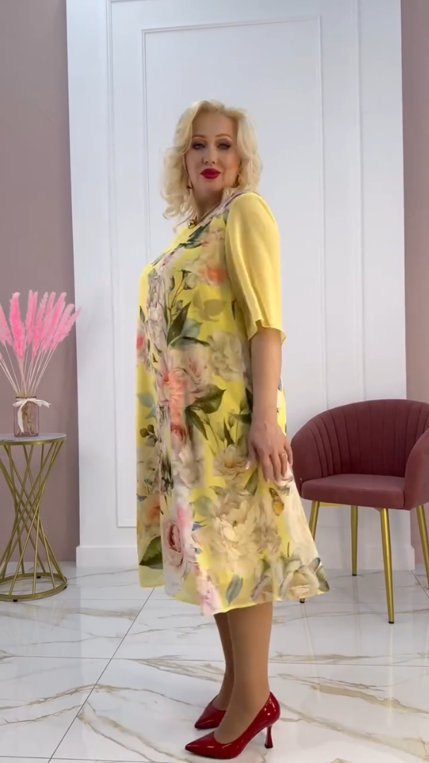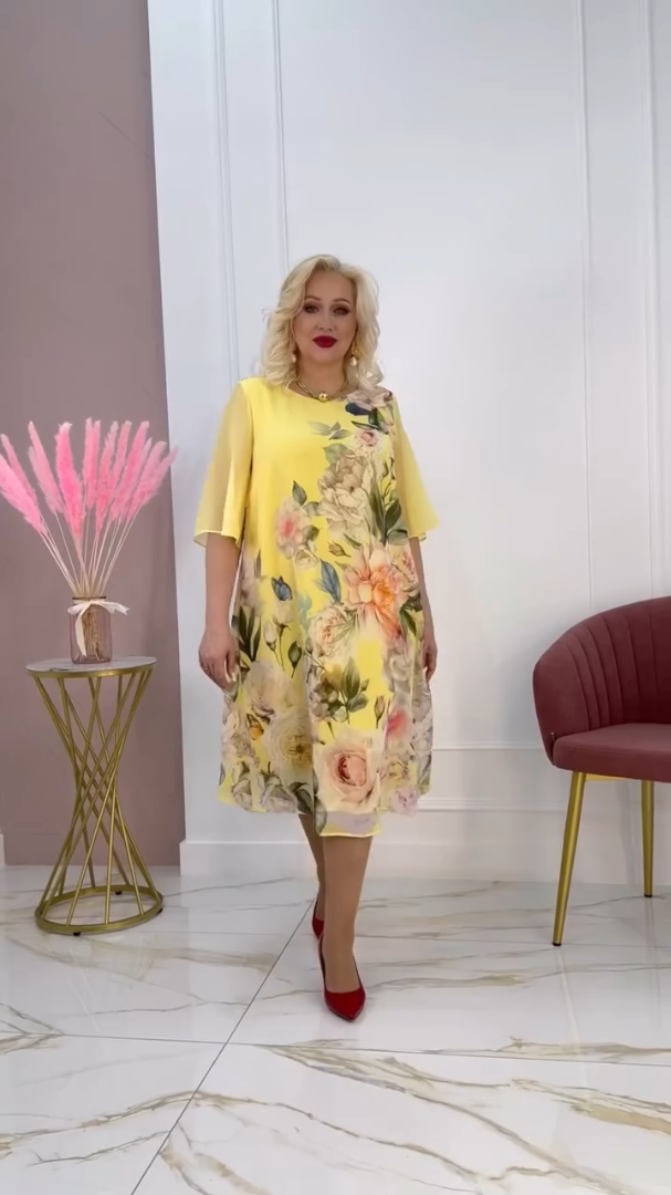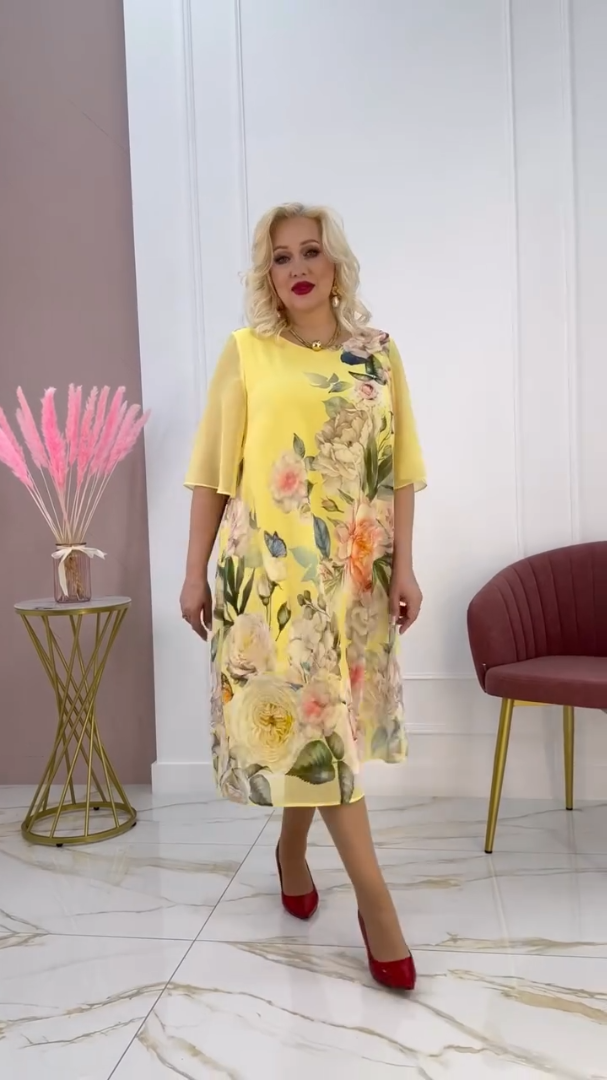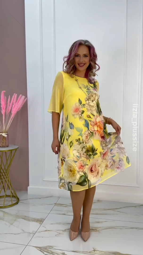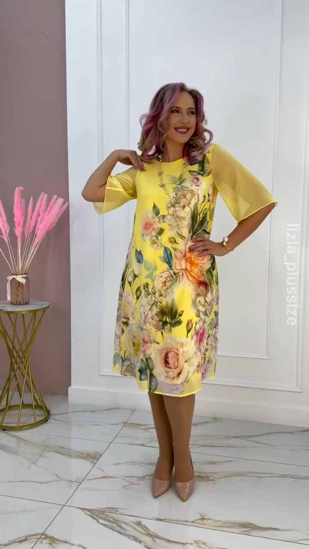 【S-5XL】🌸Nowa sukienka z szyfonu z półrękawem i nadrukowaną siateczką 2025