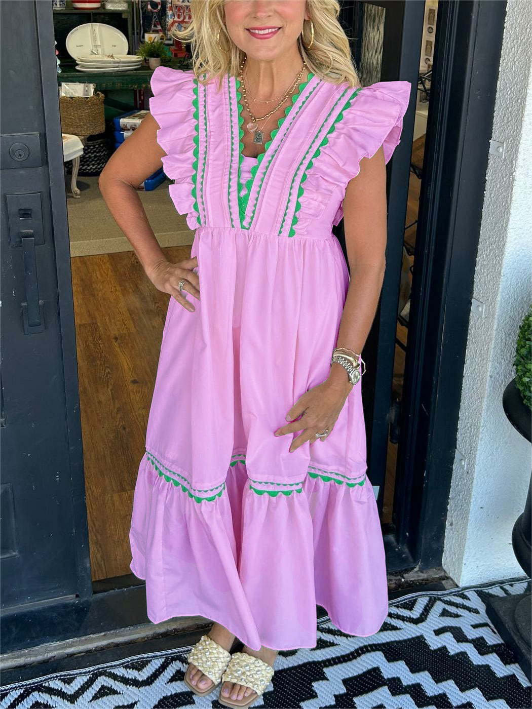 ✨ Damska sukienka z marszczonymi rękawami i dekoltem w kształcie litery V