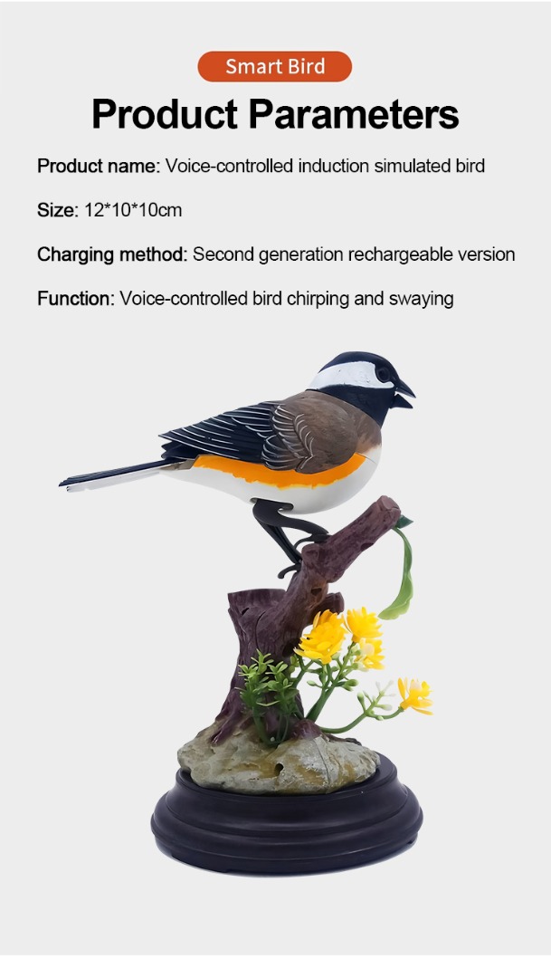 🦜🐦Ptak sterowany głosem, poruszający się i ćwierkający, symulujący zabawkę indukcyjną