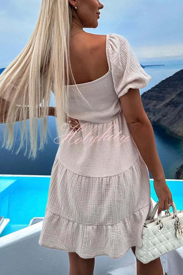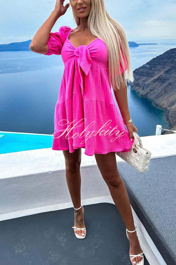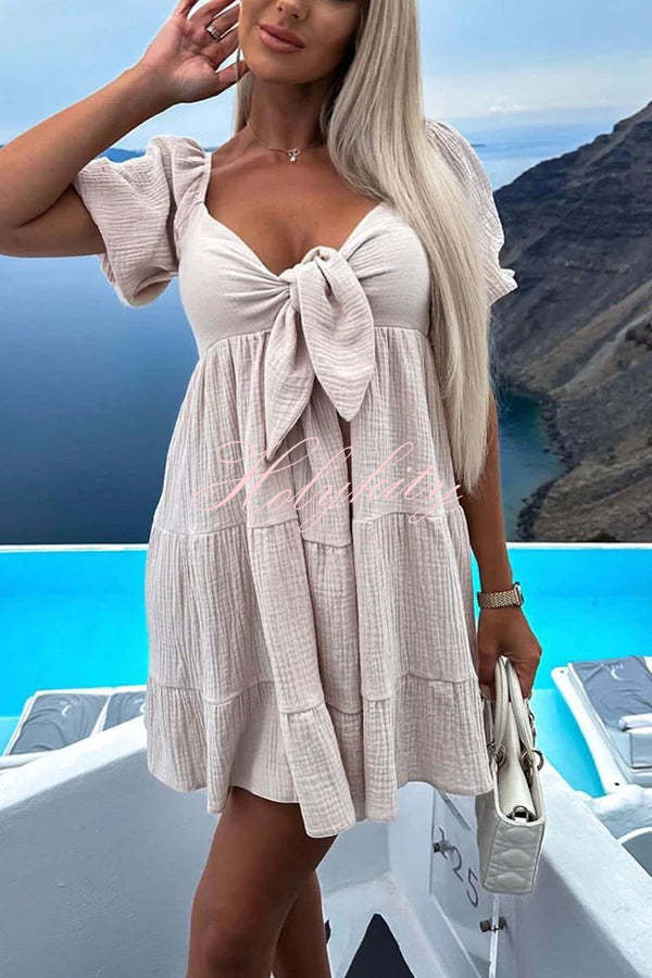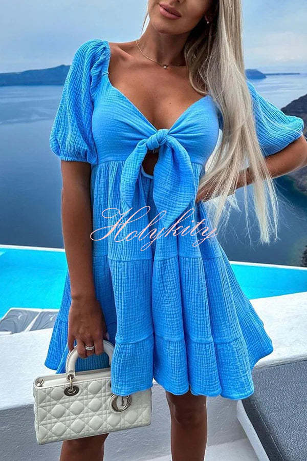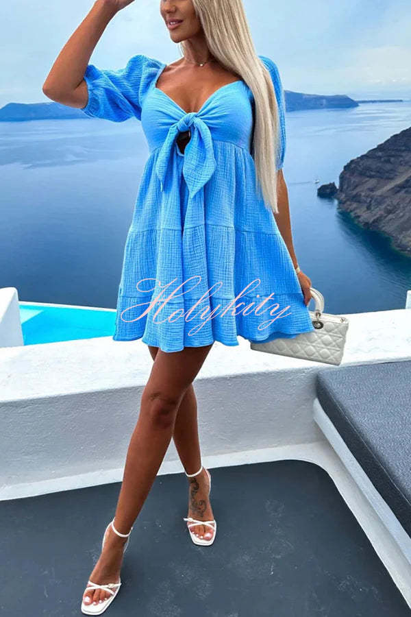 Sznurowana mini sukienka z dekoltem w kształcie litery V i rękawami balonowymi