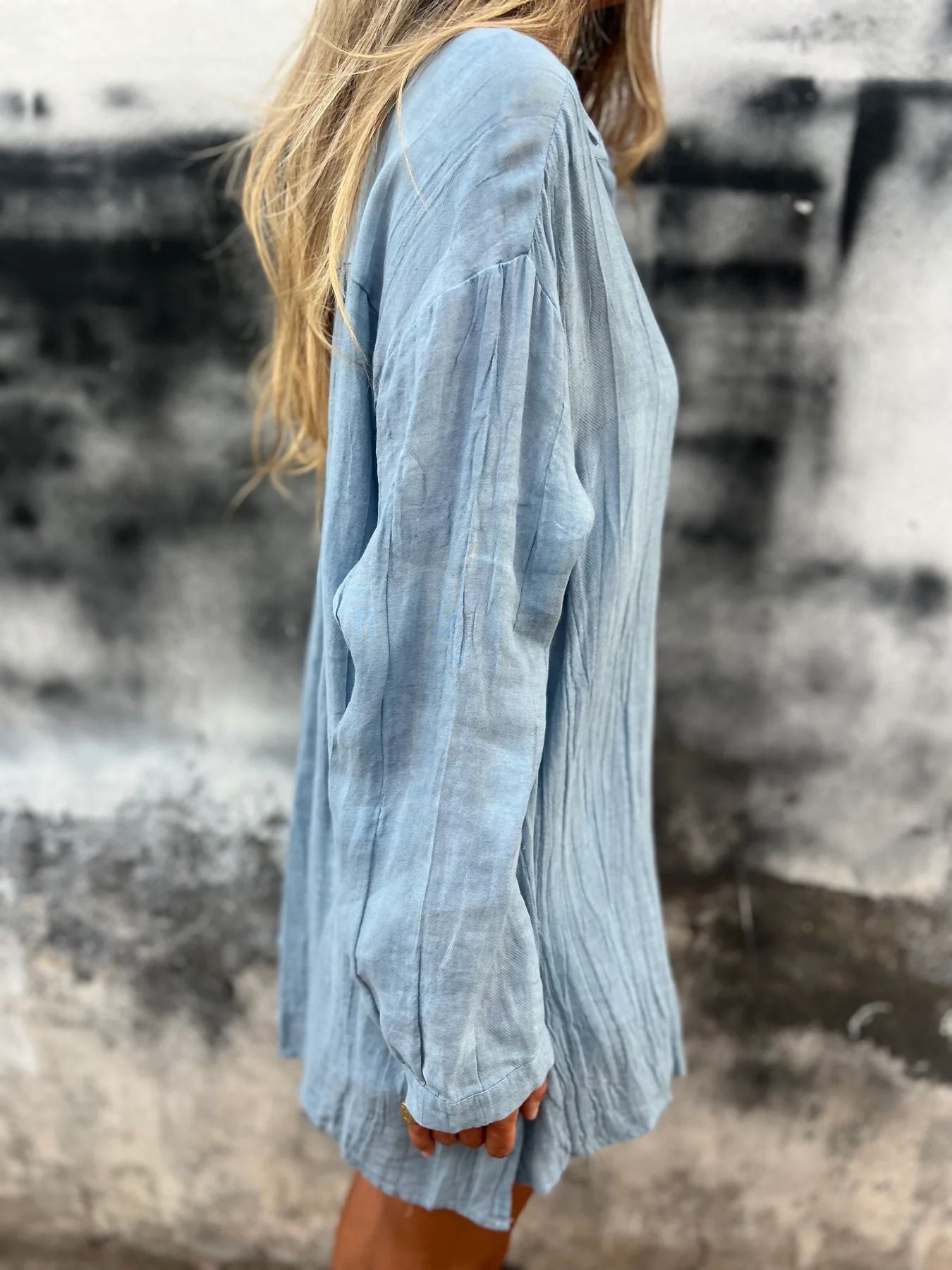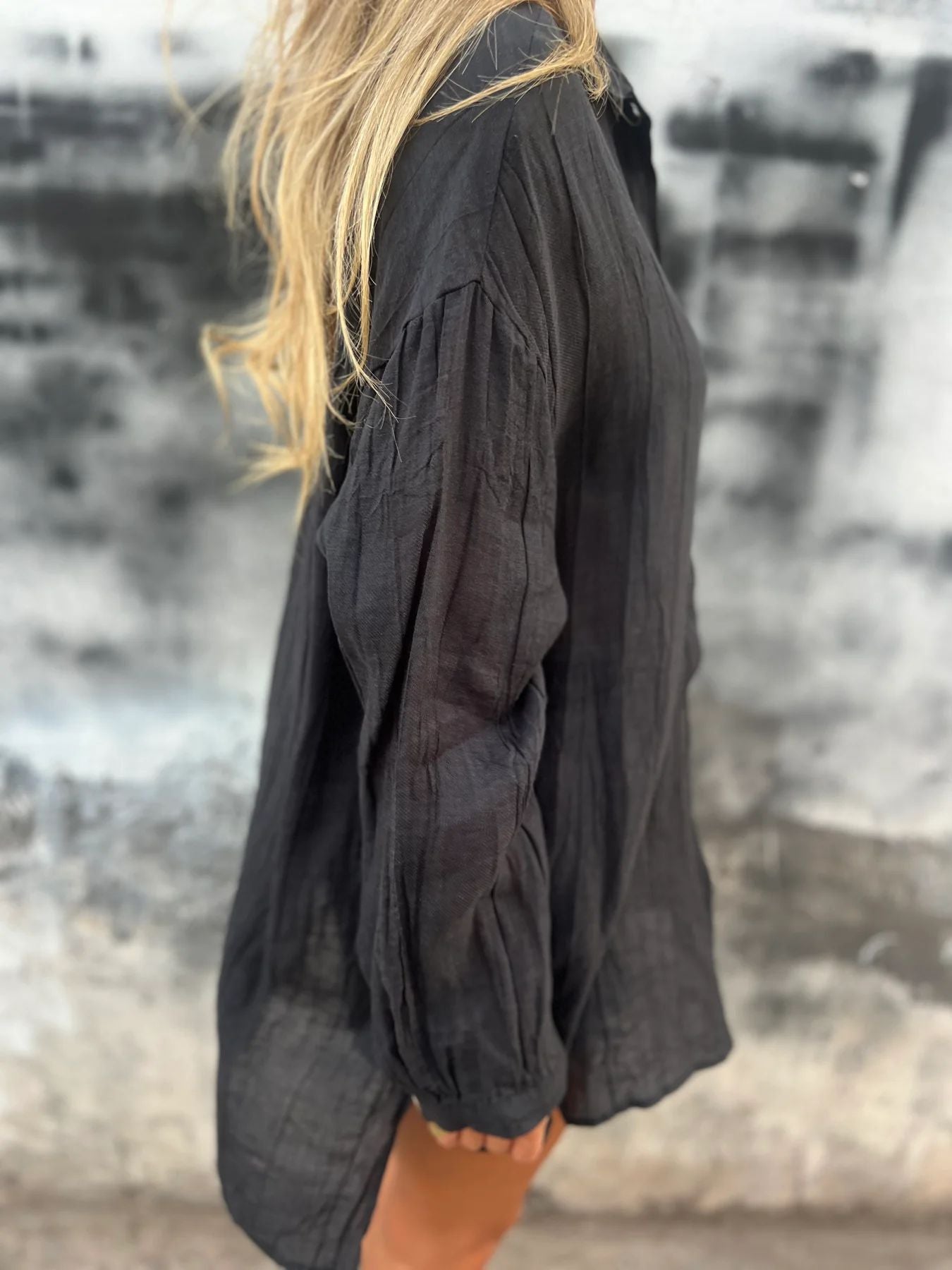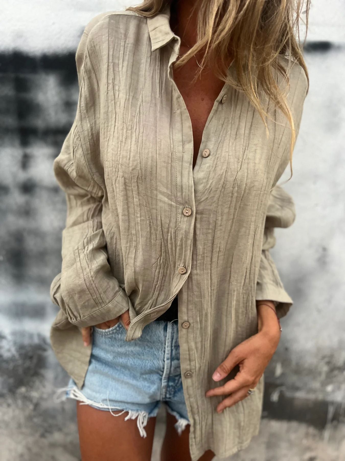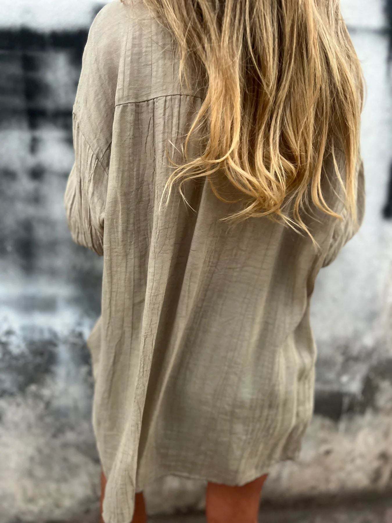 Damska marszczona koszula z klapami i długim rękawem